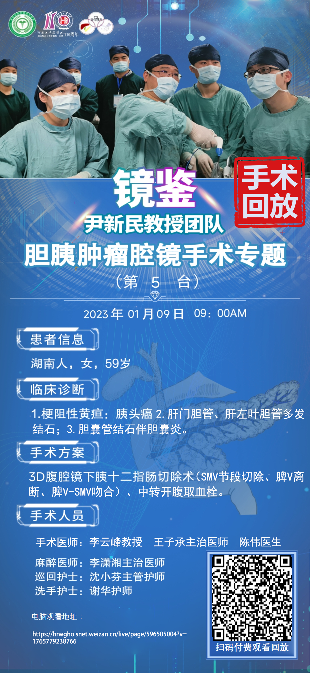 尹新民教授团队胆胰肿瘤第5台|3D腹腔镜下胰十二指肠切除术|1、梗阻性黄疸:胰头癌?2.肝门胆管、肝左叶胆管多发结石;3、胆囊管结石伴胆囊炎|20230109