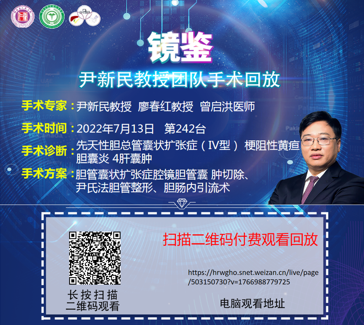 尹新民教授团队第242台|胆管囊状扩张症腔镜胆管囊 肿切除、尹氏法胆管整形、胆肠内引流术 |1、先天性胆总管囊状扩张症(IV型)2、梗阻性黄疸 3、胆囊炎 4肝囊肿|20220713