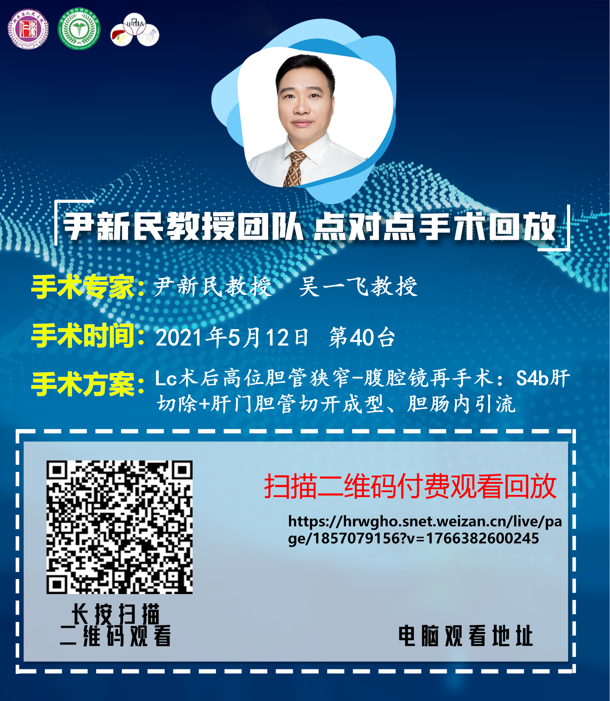 尹新民教授团队点对点第40台|腹腔镜下胆道探查、肝门胆管成型、胆肠内引流术|1.胆管狭窄(肝门部)并胆管炎2.胆囊切除术后状态 3.高血压|20210512
