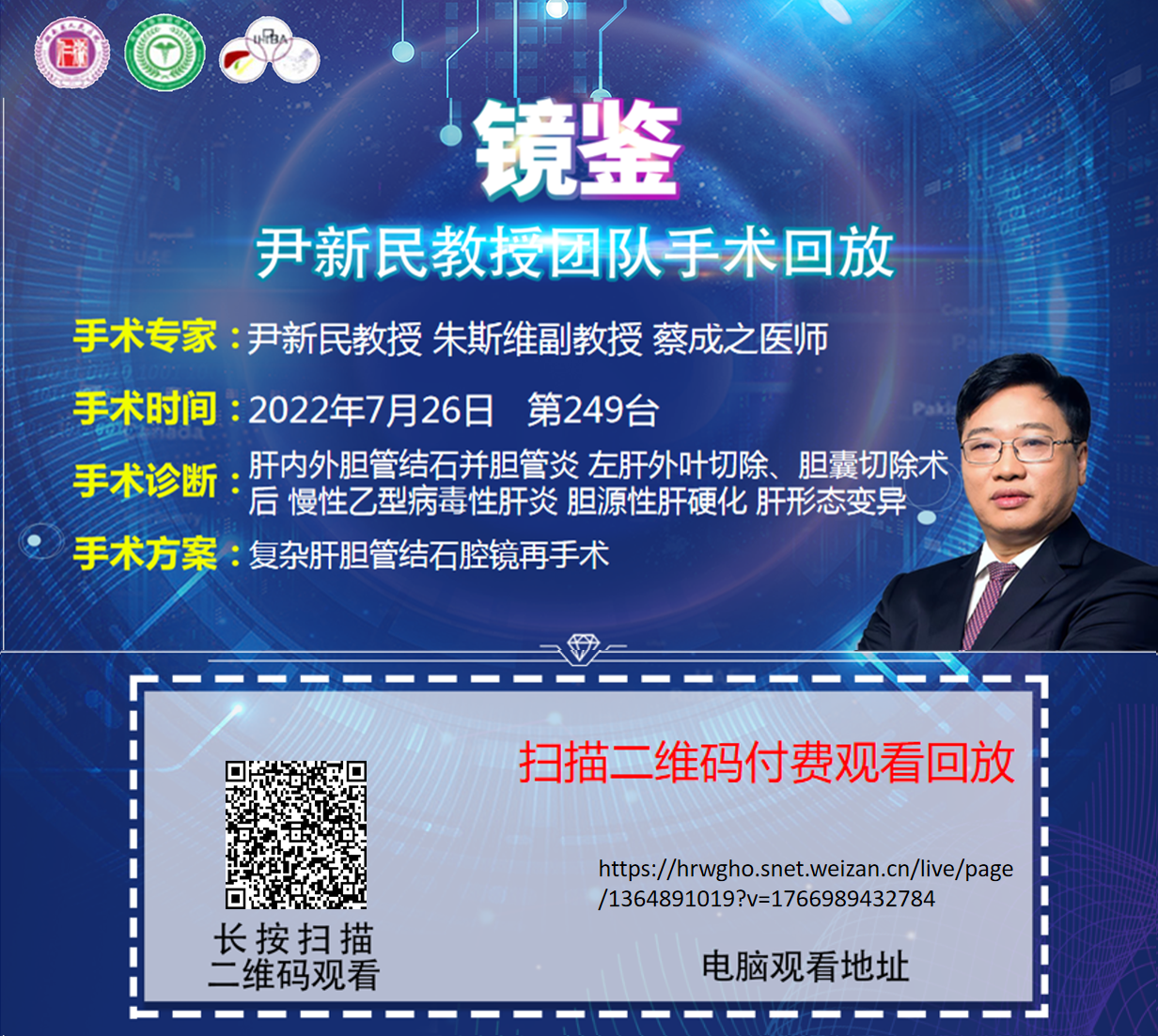 尹新民教授团队249台|复杂肝胆管结石腔镜再手术|1.肝内外胆管结石并胆管炎 2.左肝外叶切除、胆囊切除术后3.慢性乙型病毒性肝炎4.胆源性肝硬化5.肝形态变异|20220726