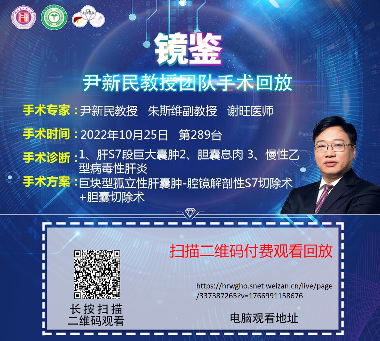 尹新民教授团队第289台 | 3D腹腔镜肝S7段切除+胆囊切除术 |1、肝S7段巨大囊肿2、胆囊息肉 3、慢性乙型病毒性肝炎 |20221025
