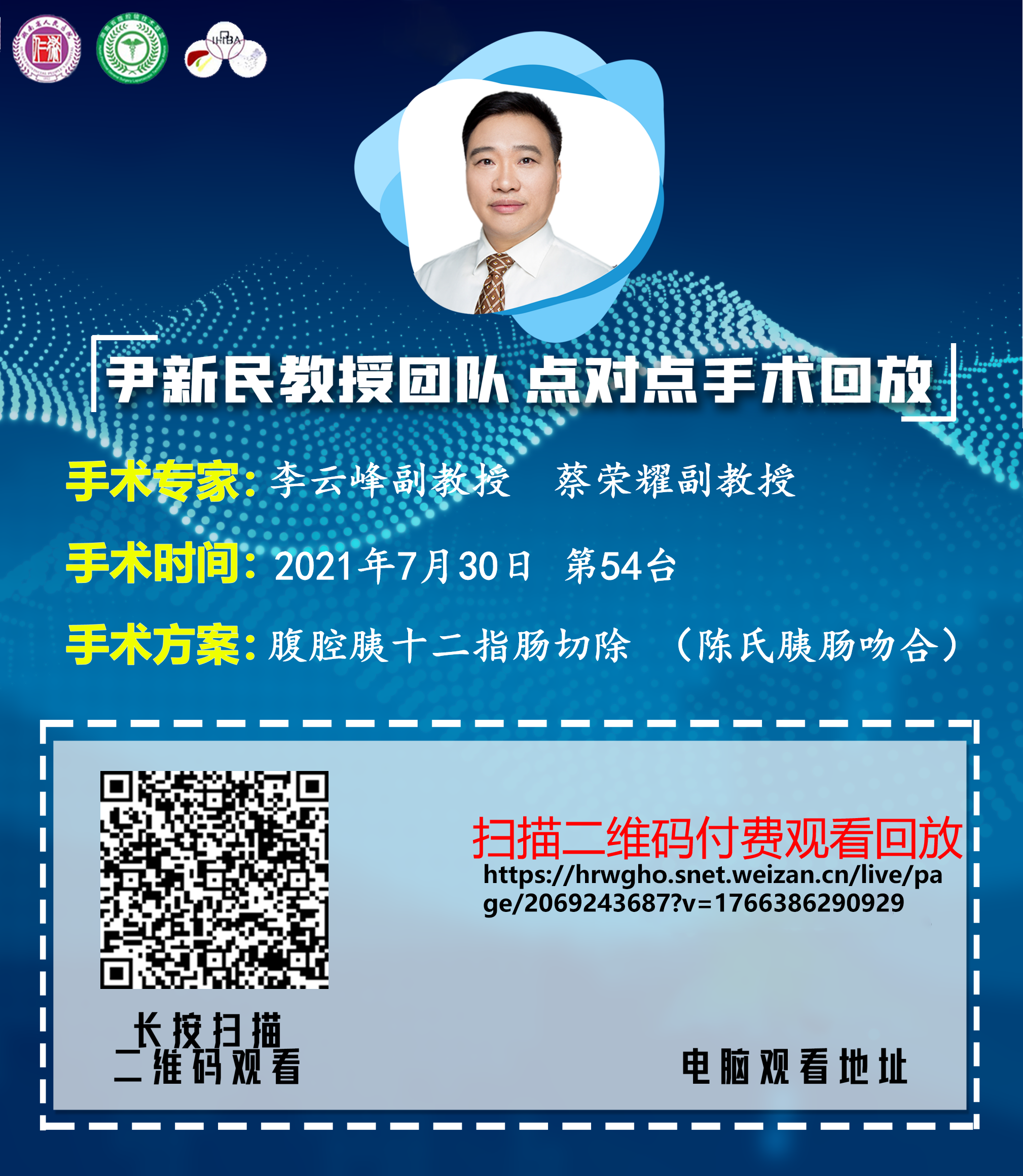 尹新民教授团队点对点第54台|腹腔胰十二指肠切除 (陈氏胰肠吻合)|胰头部占位性病变:胰腺Ca壶腹Ca其他胰腺勾突部囊性灶:假性囊肿囊腺瘤其他慢性乙型病毒性肝炎|20210730