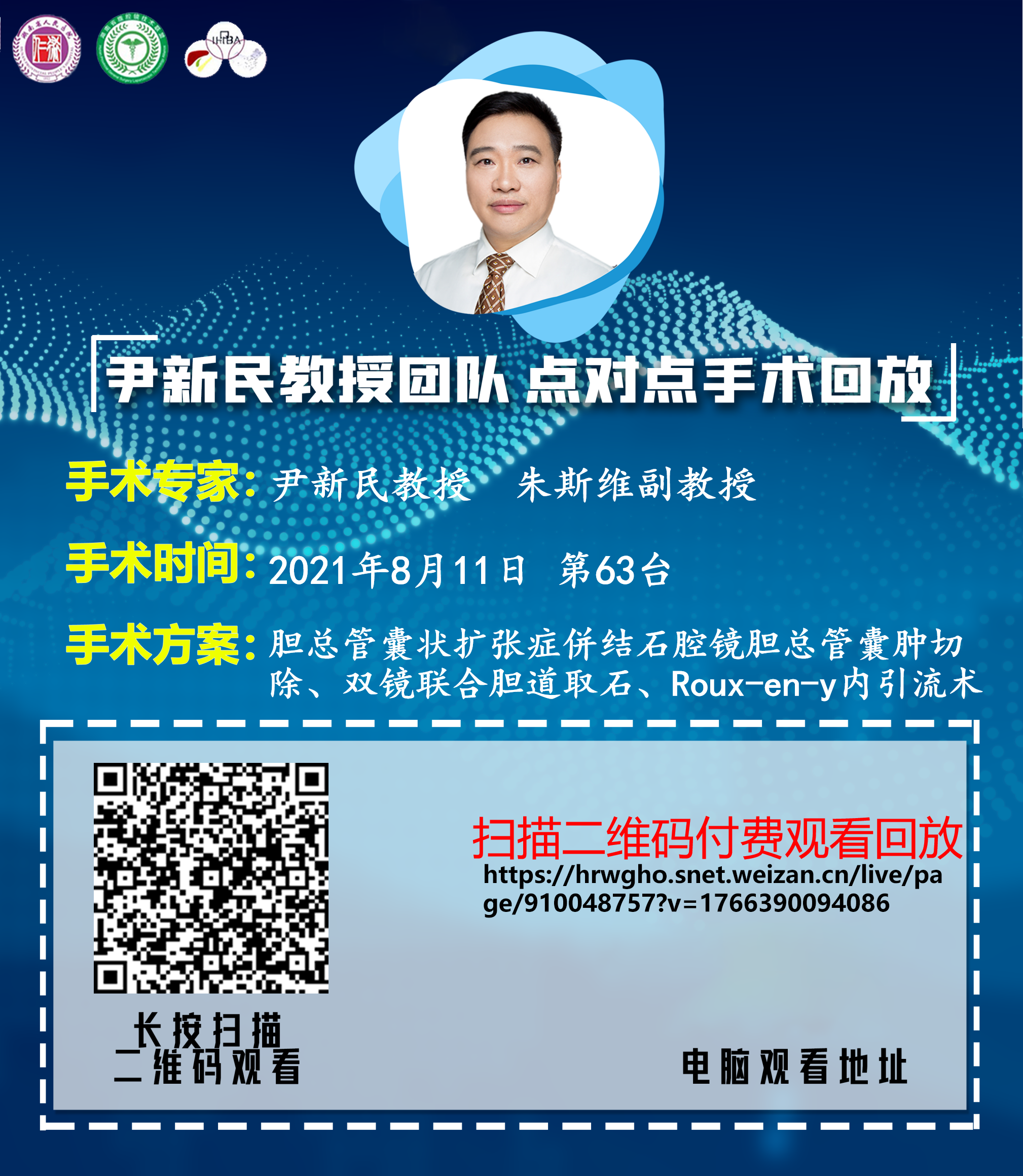 尹新民教授团队点对点第63台|胆总管囊状扩张症併结石腔镜胆总管囊肿切除+双镜联合胆道取石+Roux-en-y内引流术|胆总管囊状扩张 I型胆总管结石胆囊炎剖宫产个人史|20210811