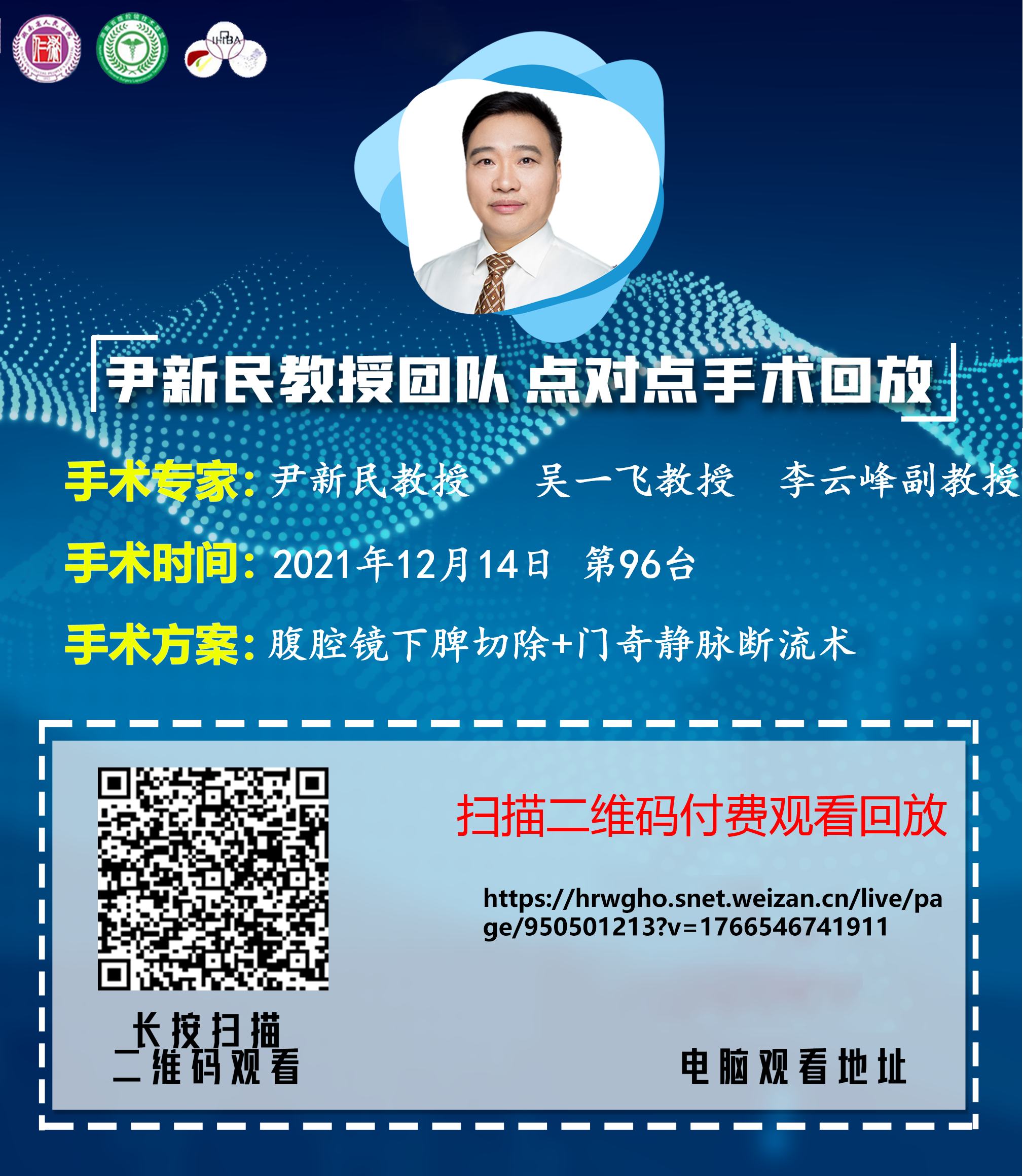 尹新民教授团队第96台|腹腔镜下脾切除+门奇静脉断流术|1.乙肝后肝硬化 门脉高压症 脾亢2.食管胃底静脉重度曲张|20211214