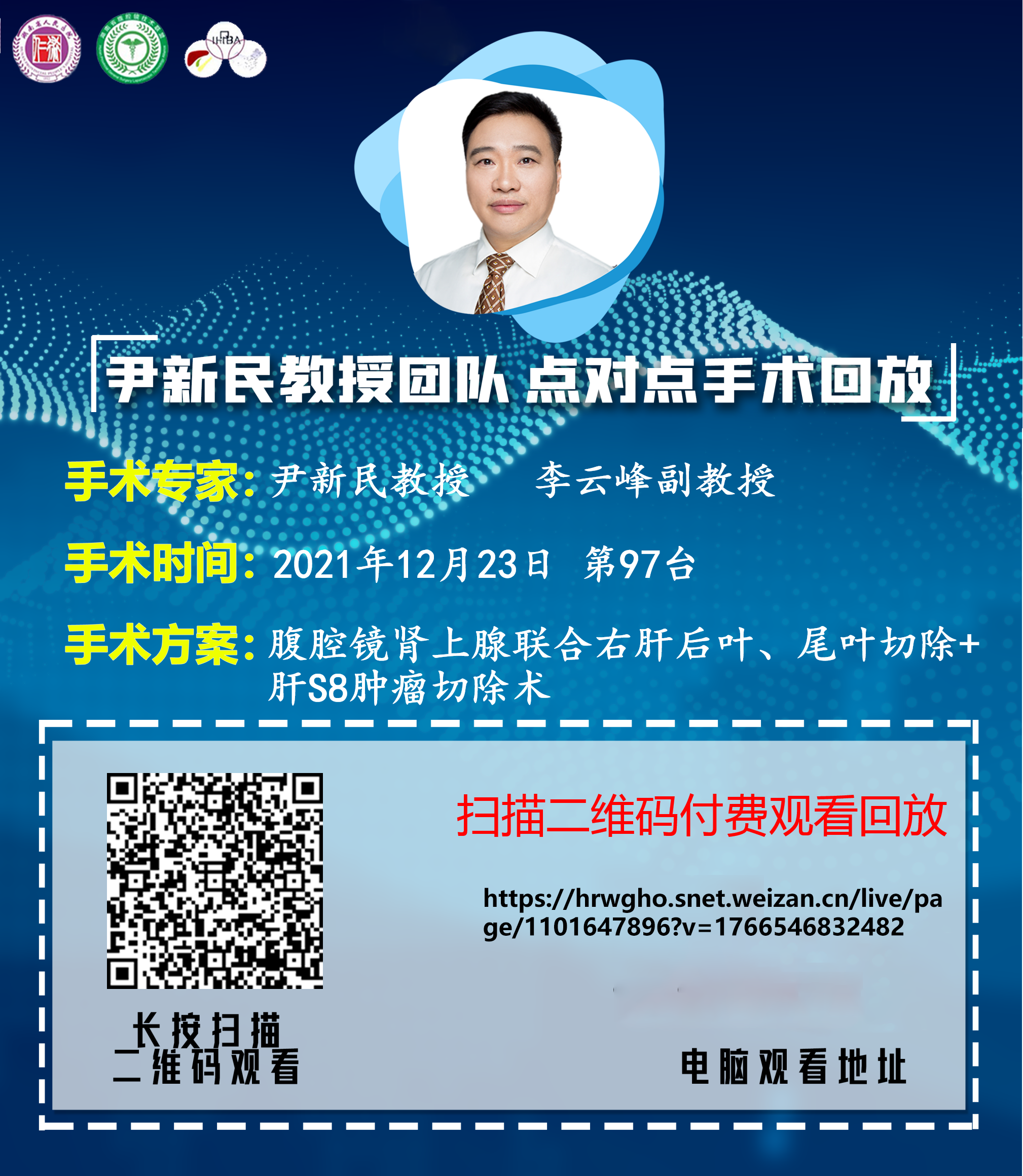 尹新民教授团队第97台|腹腔镜肾上腺联合右肝后叶、尾叶切除+肝S8肿瘤切除术|肝S6S7S8占位:炎性肉芽肿?肿瘤?|20211223