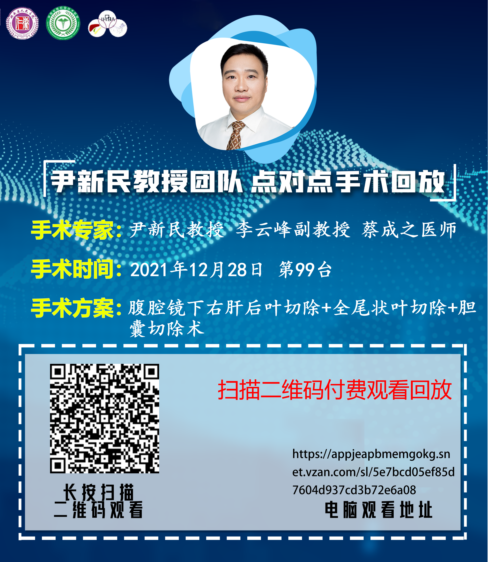 尹新民教授团队第99台|腹腔镜下右肝后叶切除+全尾状叶切除+胆囊切除术|肝尾状叶巨块型FHN(压迫右肝蒂、肝右V、肝中V及下腔V)|20211228