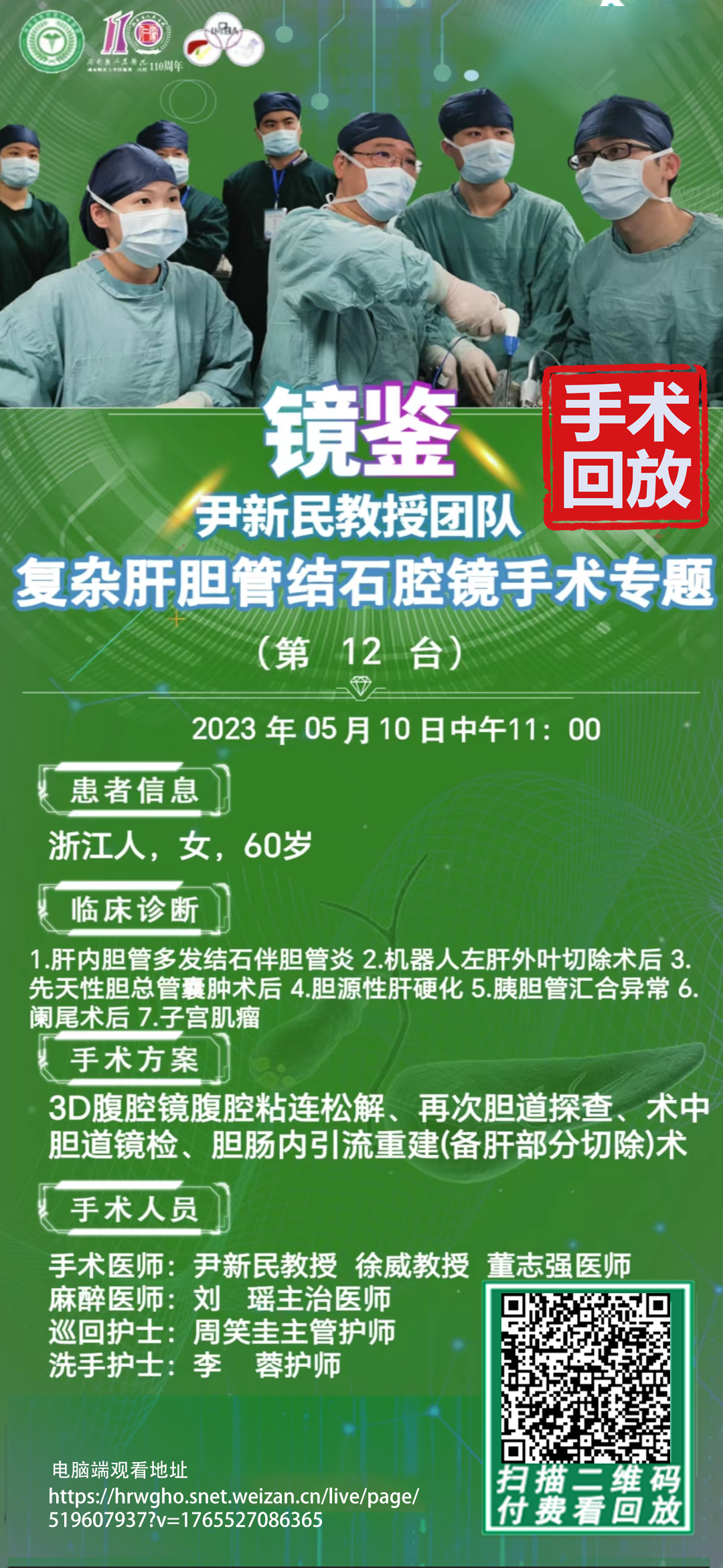 尹新民教授团队复杂肝胆管结石第16台|3D腹腔镜下再次胆道探查、肝S4b及肝门疤痕组织切除、胆道镜取石、尹氏肝门胆管成型、胆肠内引流术|20230606