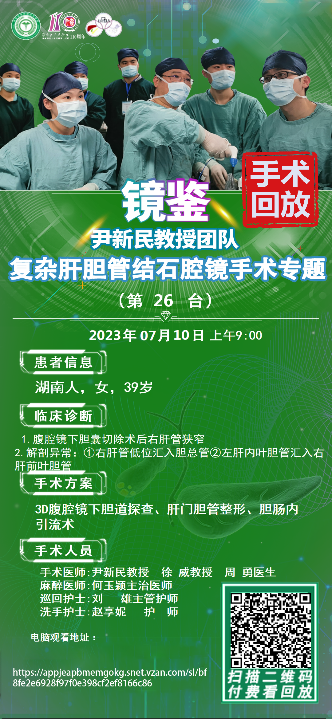 尹新民教授团队复杂肝胆管结石腔镜手术第 26 台|"1右肝管狭窄:2.右肝 内胆管结石并右肝萎缩 3.腹腔镜胆囊切除术后"| "3D腹腔镜下胆道探查、、肝 门胆管整形、胆肠内引流)"|20230710