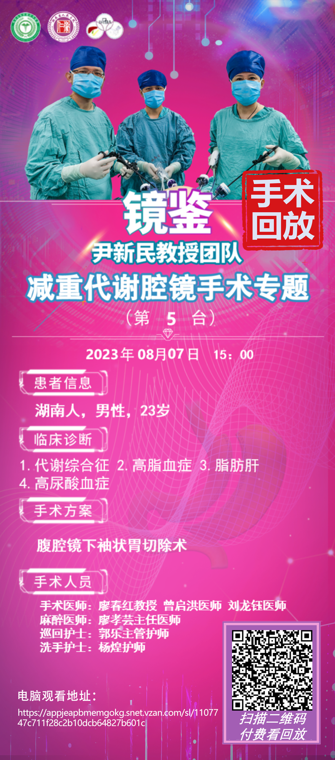 尹新民教授团队减重代谢第5台|腹腔镜下袖状胃切除术|1.代谢综合征 2.高脂血症 3.脂肪肝 4.高尿酸血症 5.胰岛素抵抗 6.黑棘皮症 7.高胰岛素血症|20230807
