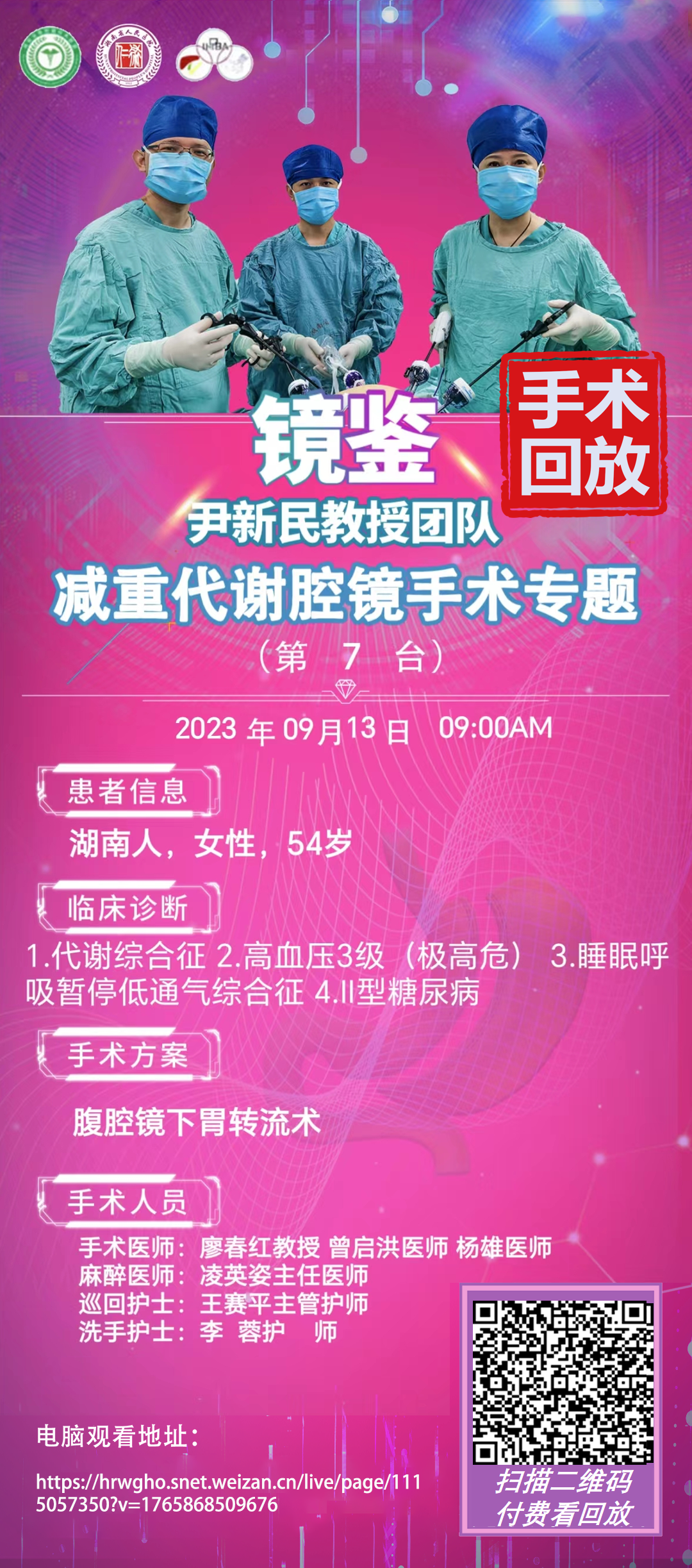 尹新民教授团队减重代谢腔镜第7台|腹腔镜下胃转流术|1.代谢综合征 2.高血压3级(极高危) 3.睡眠呼吸暂停低通气综合征 4.II型糖尿病|20230913
