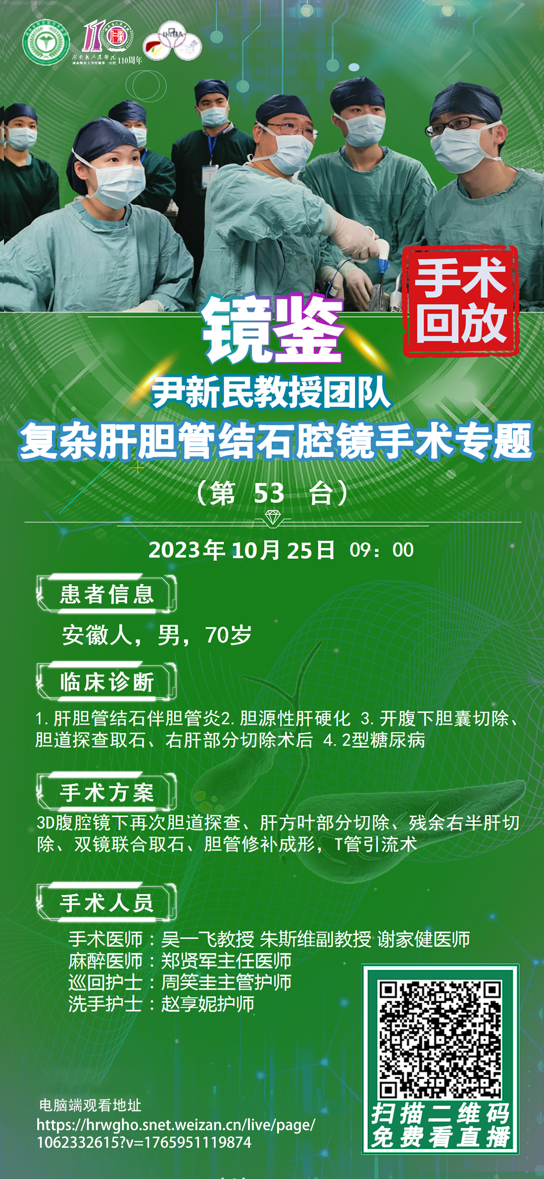 尹新民教授团队-复杂肝胆管结石腔镜手术-第53台|3D腹腔镜下再次胆道探查取石、肝门胆管整形、双镜联合取石、胆肠内引流术(备右半肝切除术)|20231025