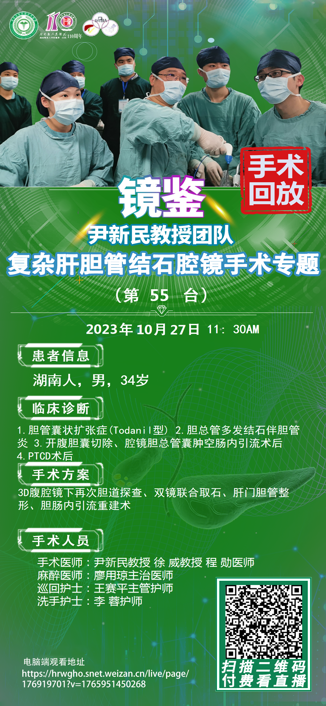 尹新民教授团队复杂肝胆管结石第55台|腹腔镜下再次胆道探查双镜联合取石肝门胆管整形胆肠内引流重建术|胆管囊状扩张症Todani I型)胆总管多发结石伴胆管炎开腹胆囊切除腔镜胆总管囊肿|20231027