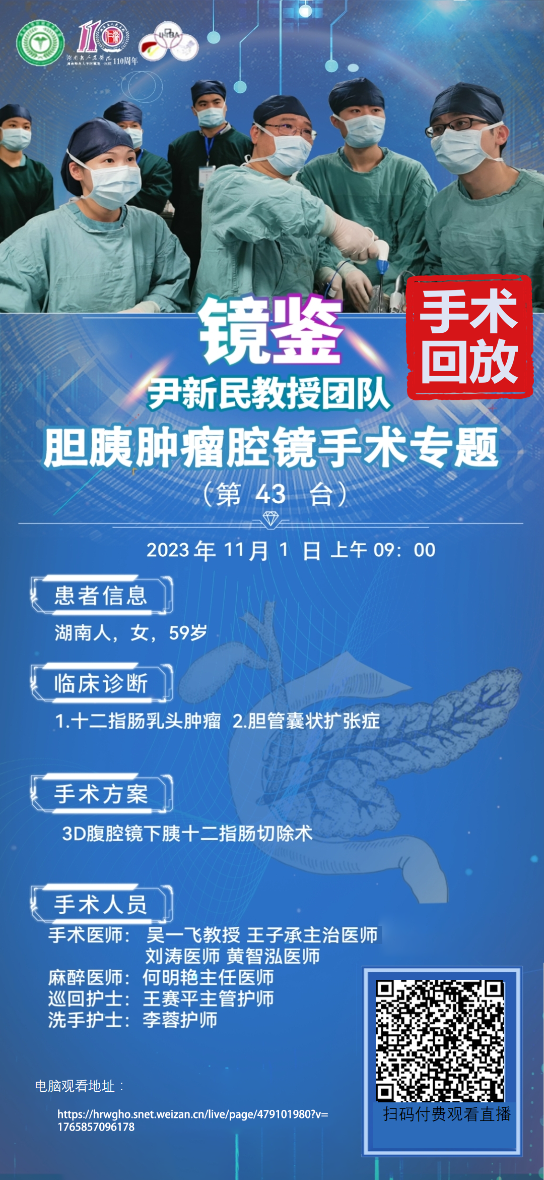 尹新民教授团队-四期胆胰肿瘤腔镜手术-第43台|3D腹腔镜下胰十二指肠切除术|1.十二指肠乳头肿瘤 2.胆管囊状扩张症|20231101