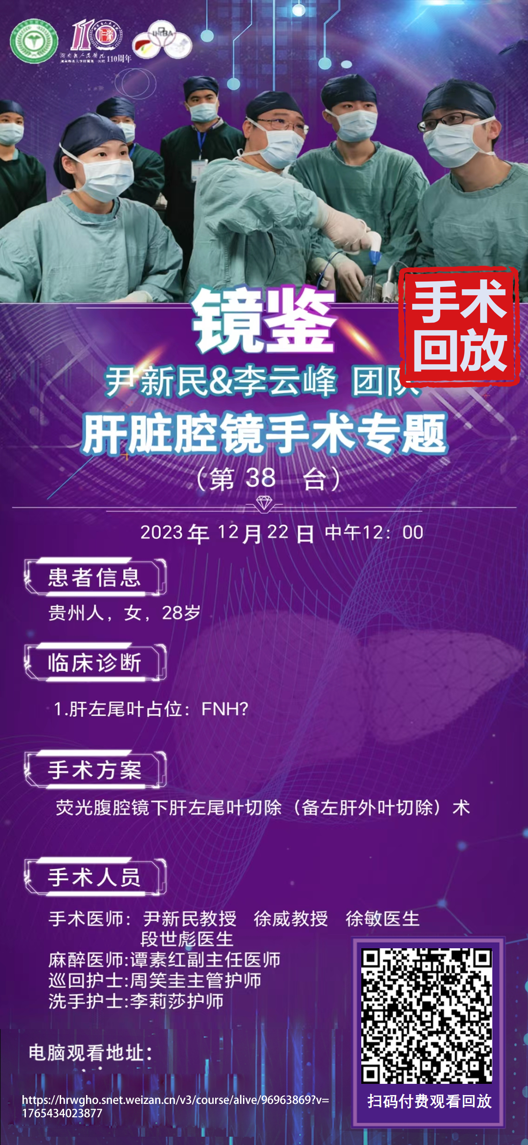 回放- 尹新民&李云峰团队-四期肝脏腔镜手术-第39台(2023-12-28)