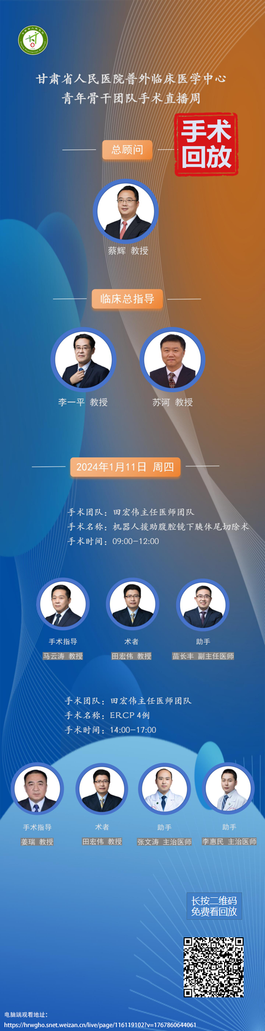 马云涛教授团队第15-19台|腹腔镜机器人胰体尾切除术|ERCP 4例|20240111