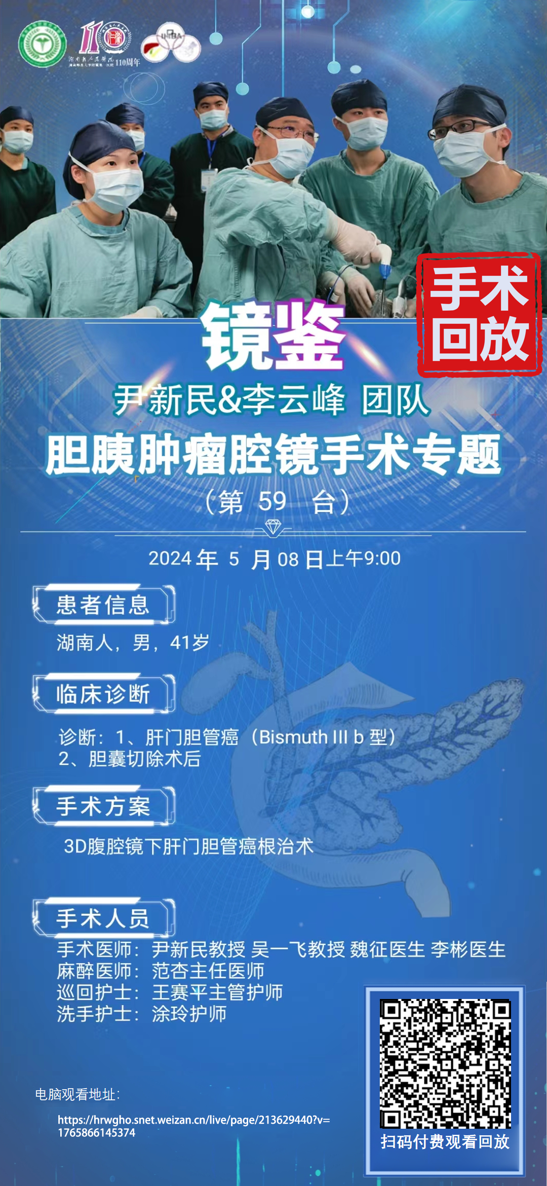 尹新民&李云峰团队四期胆胰腔镜手术第59台|3D腹腔镜下肝门胆管癌根治术|1、肝门胆管癌(Bismuth III b 型)2、胆囊切除术后|20240508
