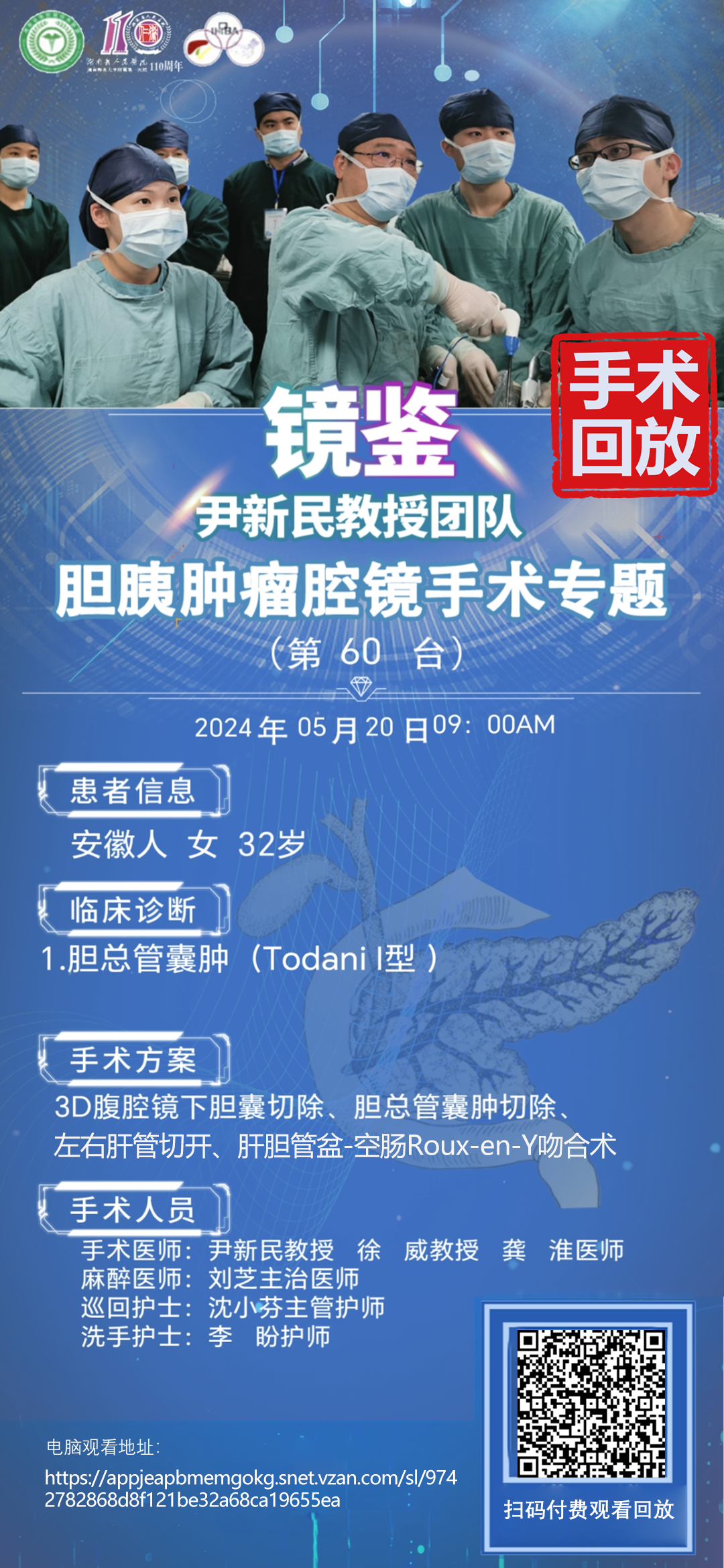 尹新民&李云峰团队四期胆胰腔镜手术第60台|3D腹腔镜下胆囊切除、胆总管囊肿切除、肝管-空肠Roux-en-y内引流术| 胆总管囊肿(Todani I型)|20240520