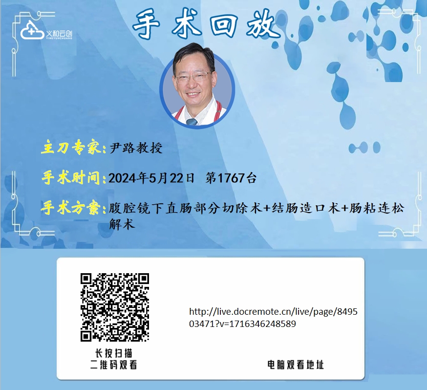 尹路教授团队第1768台|腹腔镜下小肠部分切除术+回肠造口还纳术|回肠造口状态 直肠恶性肿瘤个人史|20240522