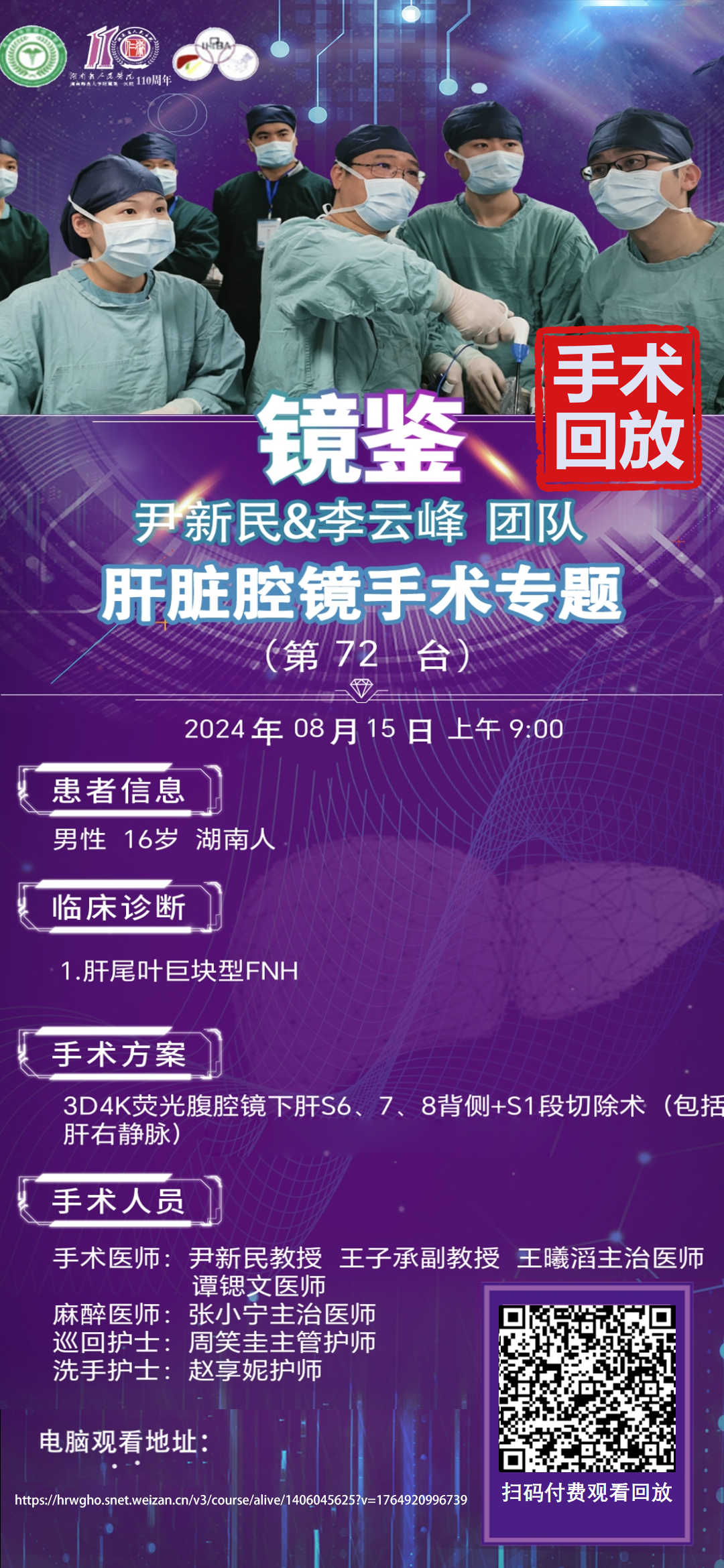 尹新民教授团队第73台肝脏|3D4K腹腔镜下肝血管瘤切除、胆囊切除(备左肝切除)术|1.肝中央区巨块血管瘤 2.胆囊息肉|20240821