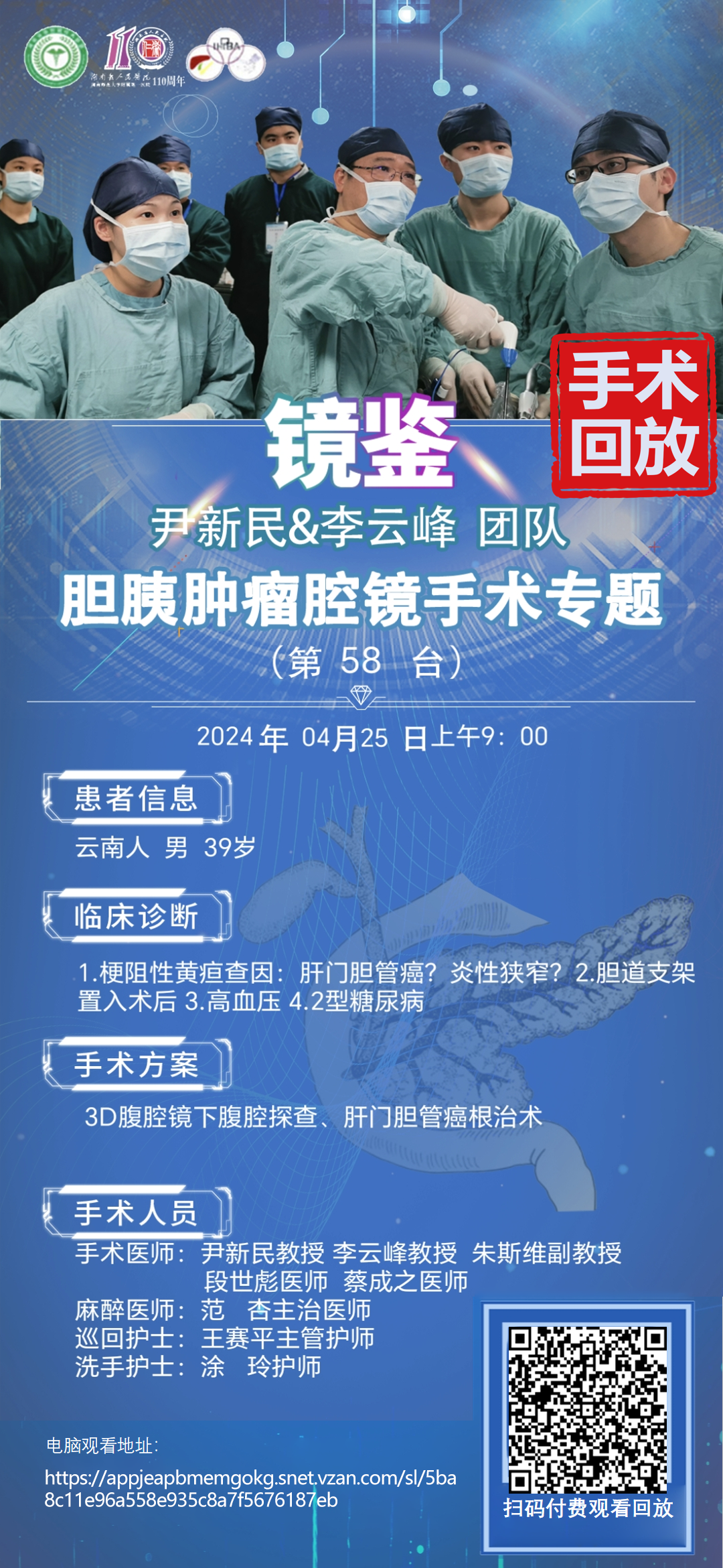 尹新民&李云峰团队四期胆胰腔镜手术第58台|1.梗阻性黄疸查因:肝门胆管癌?炎性狭窄?2.胆道支架置入术后 3.高血压 4.2型糖尿病|3D腹腔镜下腹腔探查、肝门胆管癌根治术|20240425