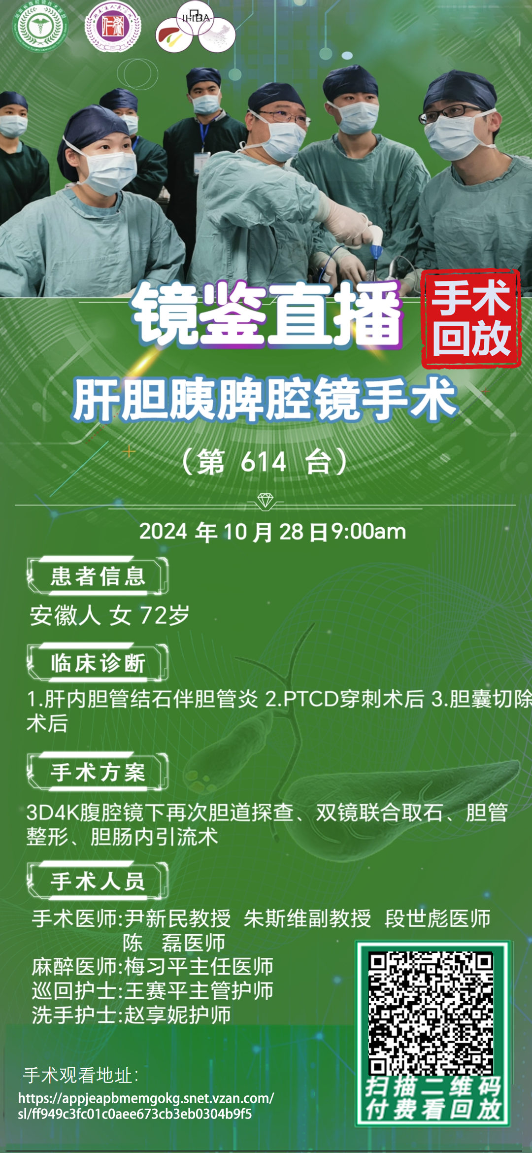 尹新民教授团队-镜鉴直播肝胆胰脾腔镜手术-第614台|3D4K腹腔镜下再次胆道探查、双镜联合取石、胆管整形、胆肠内引流术|1.肝内胆管结石伴胆管炎 |20241028