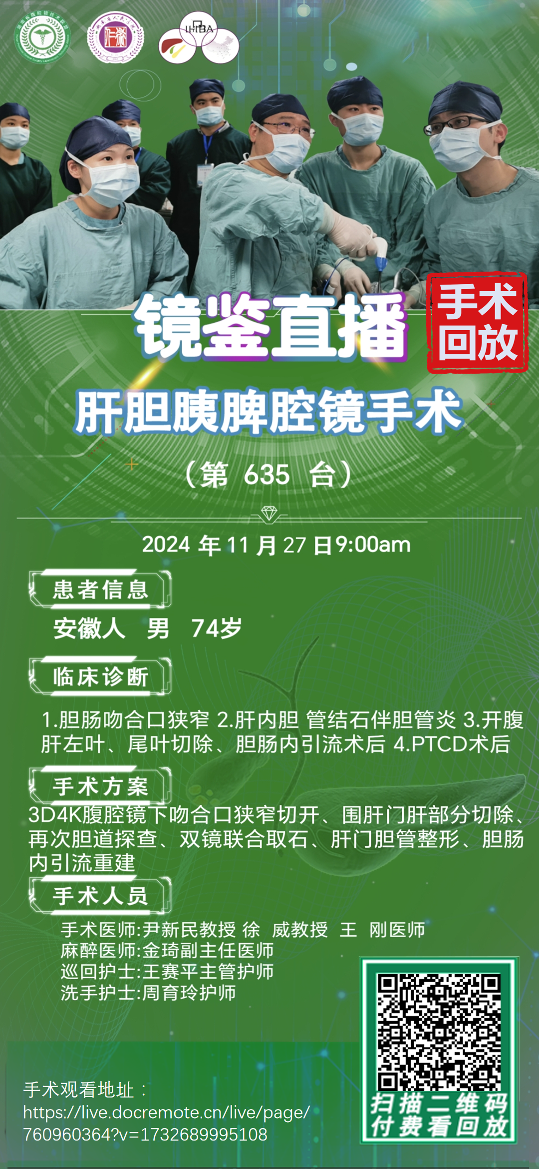 尹新民教授团队-镜鉴直播肝胆胰脾腔镜手术-第635台|吻合口狭窄切开、围肝门肝部分切除再次胆道探查、双镜联合取石、肝门胆管整形、胆肠内引流重建|1.胆肠吻合口狭窄|20241127