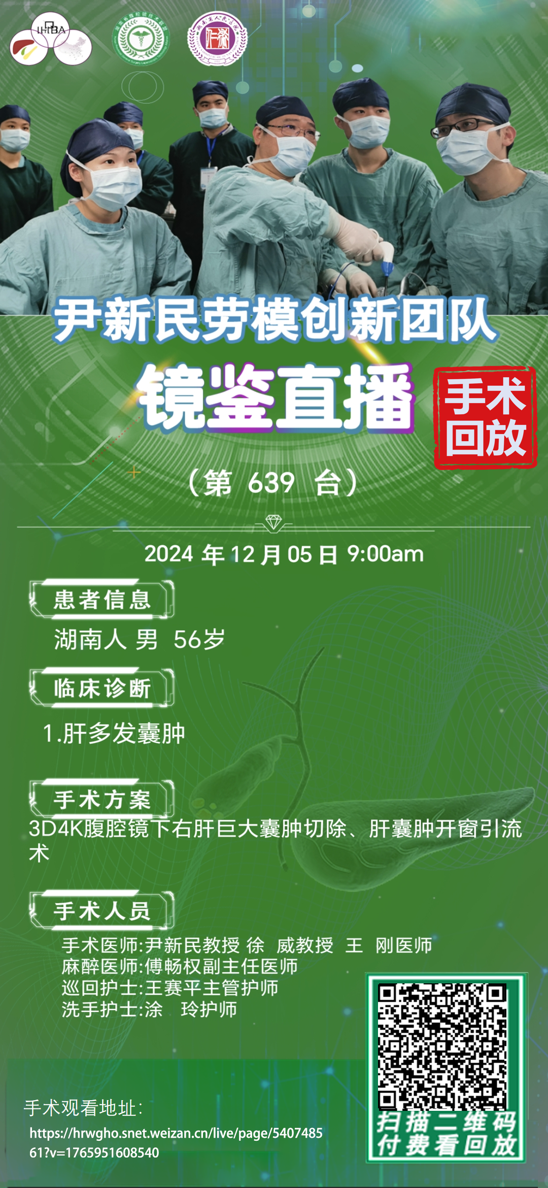 尹新民劳模创新团队镜鉴直播-第639台|3D4K腹腔镜下右肝巨大囊肿切除、肝囊肿开窗引流术|1.多发性肝囊肿|20241205