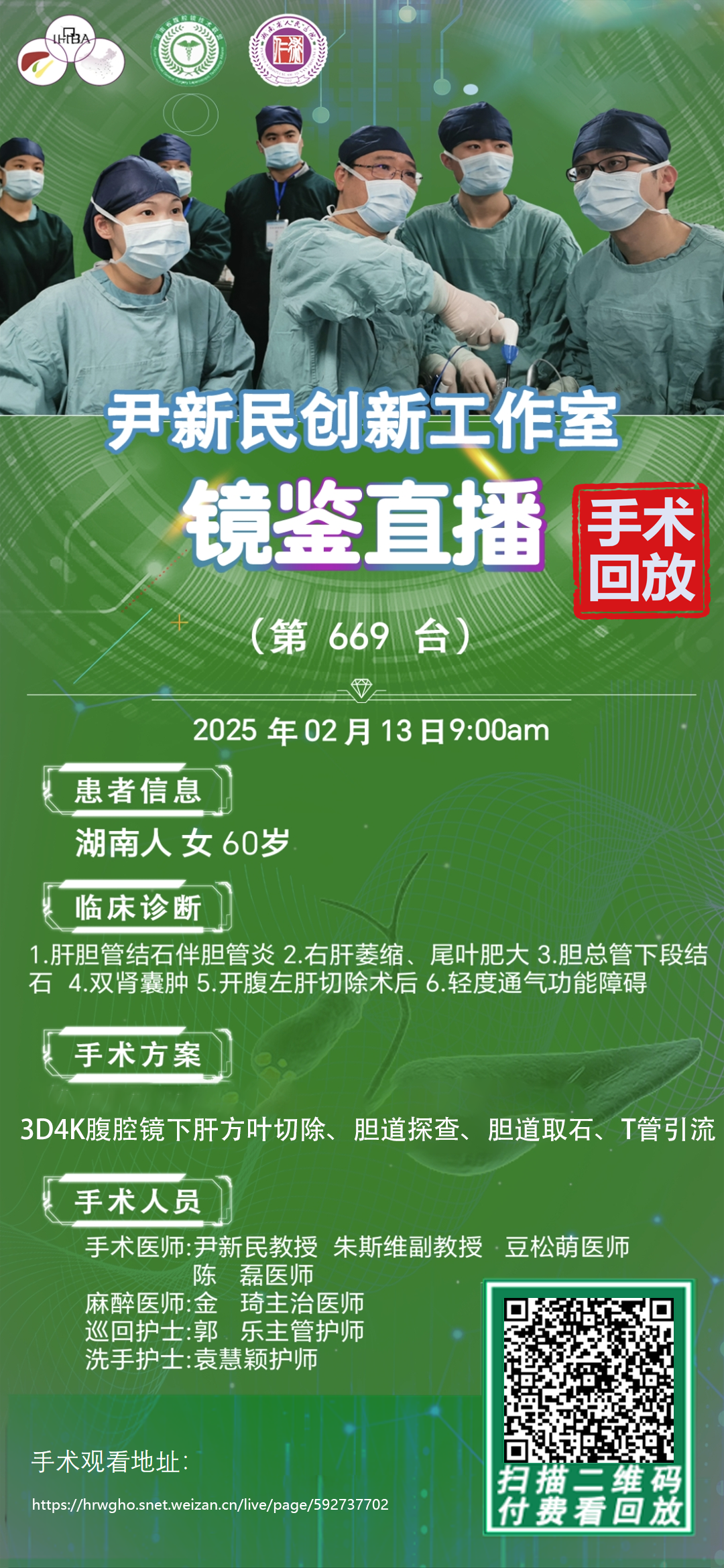 尹新民劳模创新团队镜鉴直播-第669台| 3D4K腹腔镜下再次胆道探查,次全肝切除(保留尾叶)|1.肝胆管结石伴胆管炎 2.右肝萎缩、尾叶肥大 3.胆总管下段结石 4.双肾囊肿|20250213