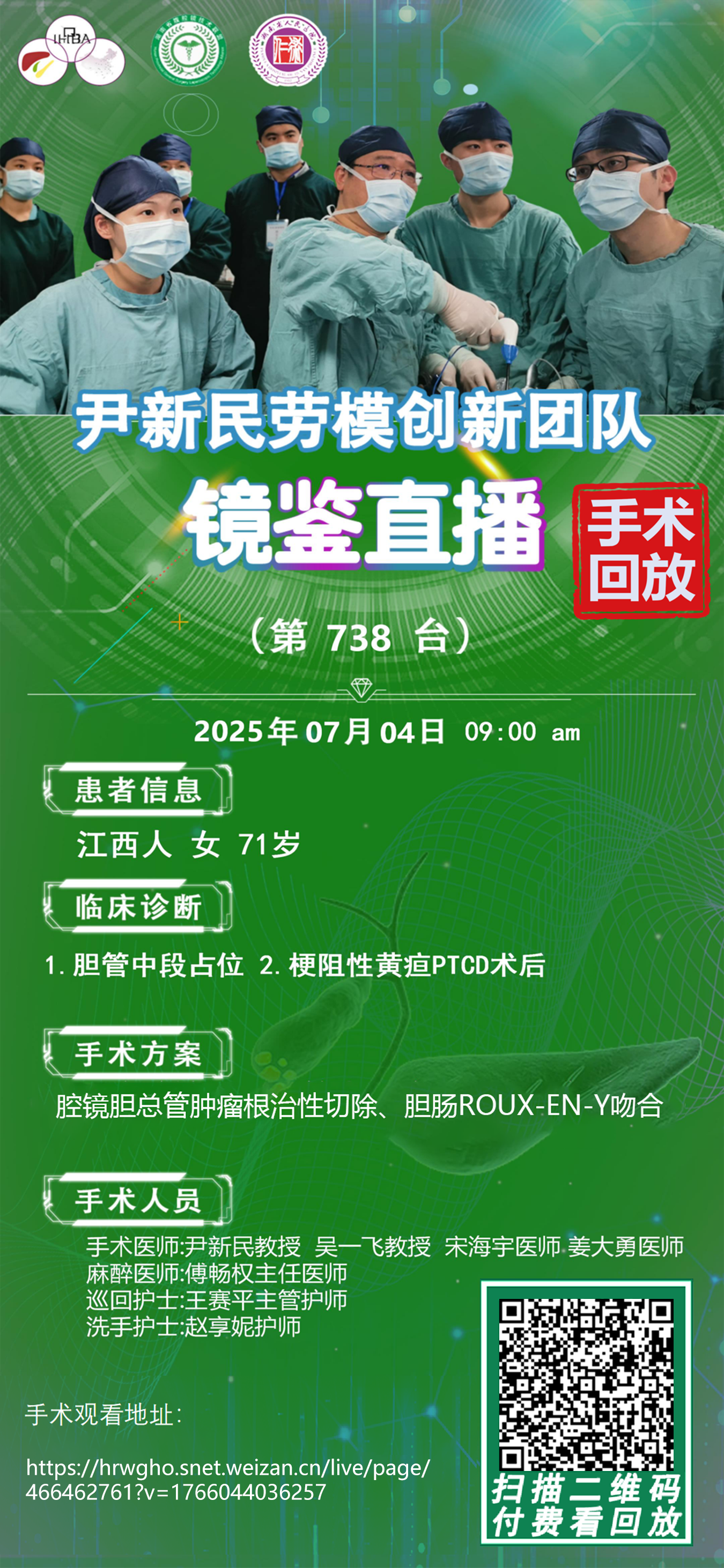 尹新民劳模创新团队镜鉴直播-第738台|3D4K腹腔镜下胆总管中段癌根治术|1.胆管中段占位:胆管癌? 2.梗阻性黄疸PTCD术后|20250704