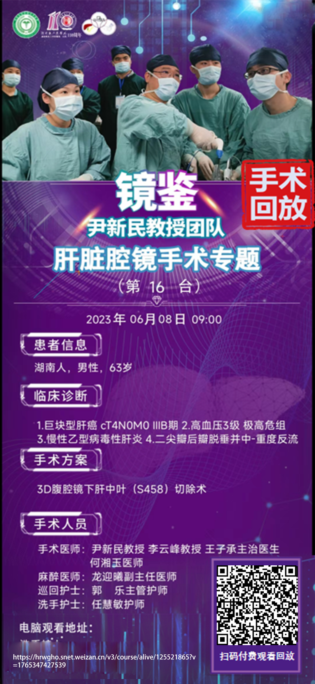 尹新民教授团队肝脏腔镜第16台|3D腹腔镜下肝中叶(S458)切除|1.巨块型肝癌 cT4N0M0 IIIB期 2.高血压3级 极高危组 3.慢性乙型病毒性肝炎|20230608
