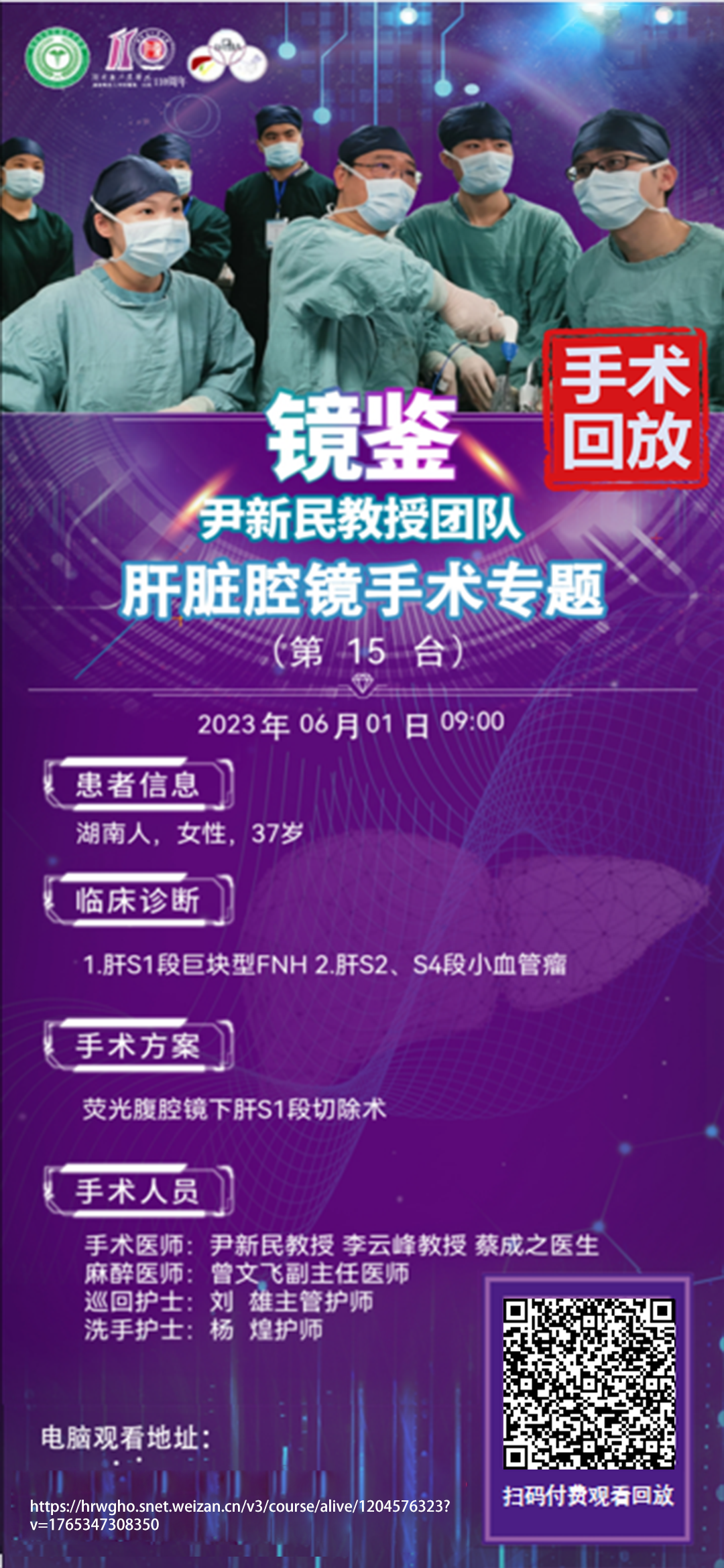 尹新民教授团队肝脏腔镜第15台|荧光腹腔镜下肝S1段切除术|1.肝S1段巨块型FNH 2.肝S2、S4段血管瘤|20230601