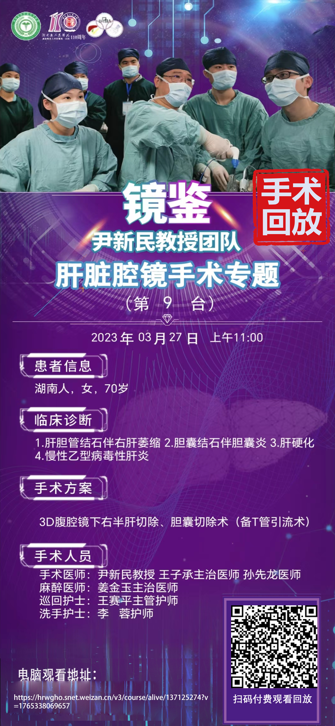 尹新民教授团队肝脏腔镜第9台|3D腹腔镜下右半肝切除、胆囊切除术(备T管引流术)|1.肝胆管结石伴右肝萎缩2.胆囊结石伴胆囊炎 3.肝硬化 4.慢性乙型病毒性肝炎|20230327