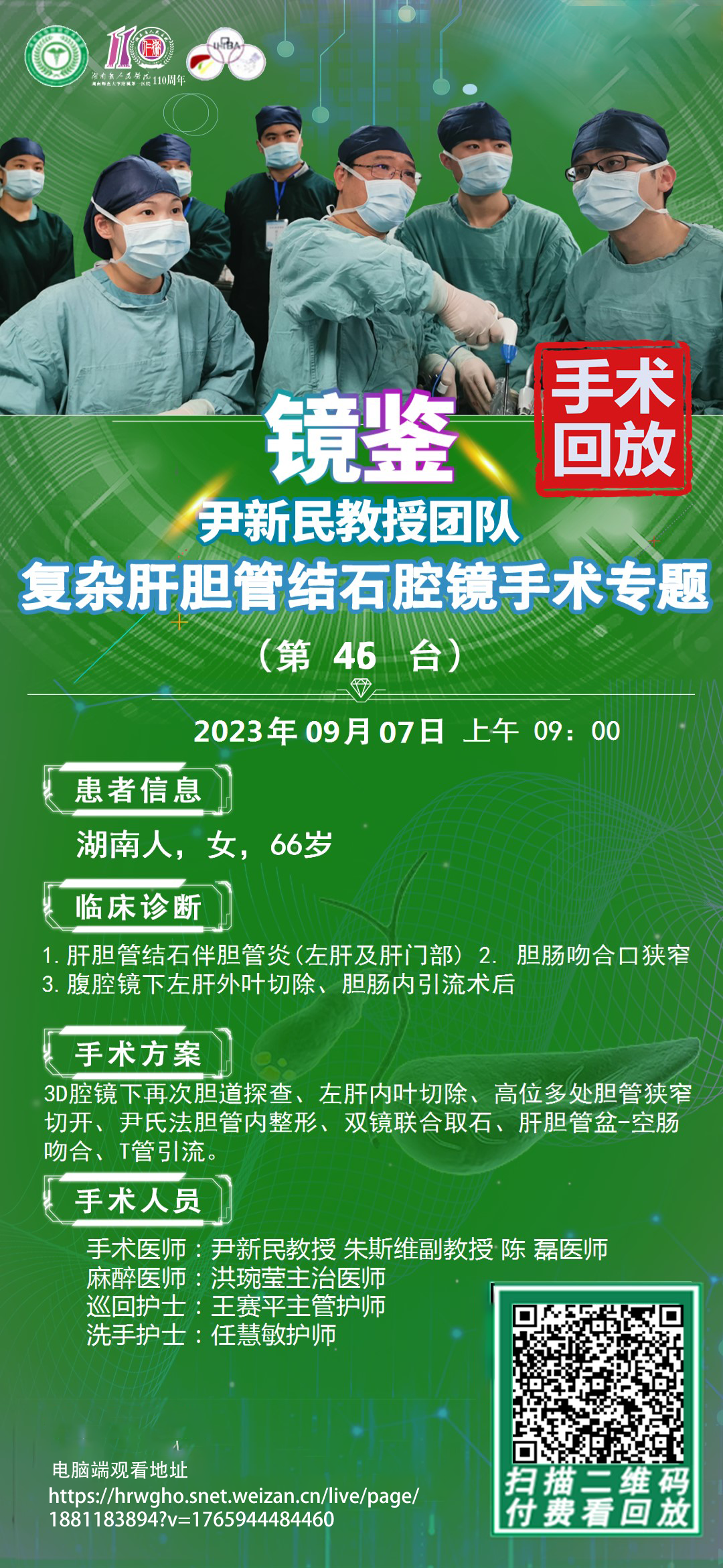尹新民&李云峰团队-复杂肝胆管结石腔镜手术-第72台|3D腹腔镜下再次胆道探查、双镜联合取石、左半肝切除、胆肠内引流术|1.肝内胆管结石伴胆管炎 2.开腹胆切、胆探术后 手术方案|20231218