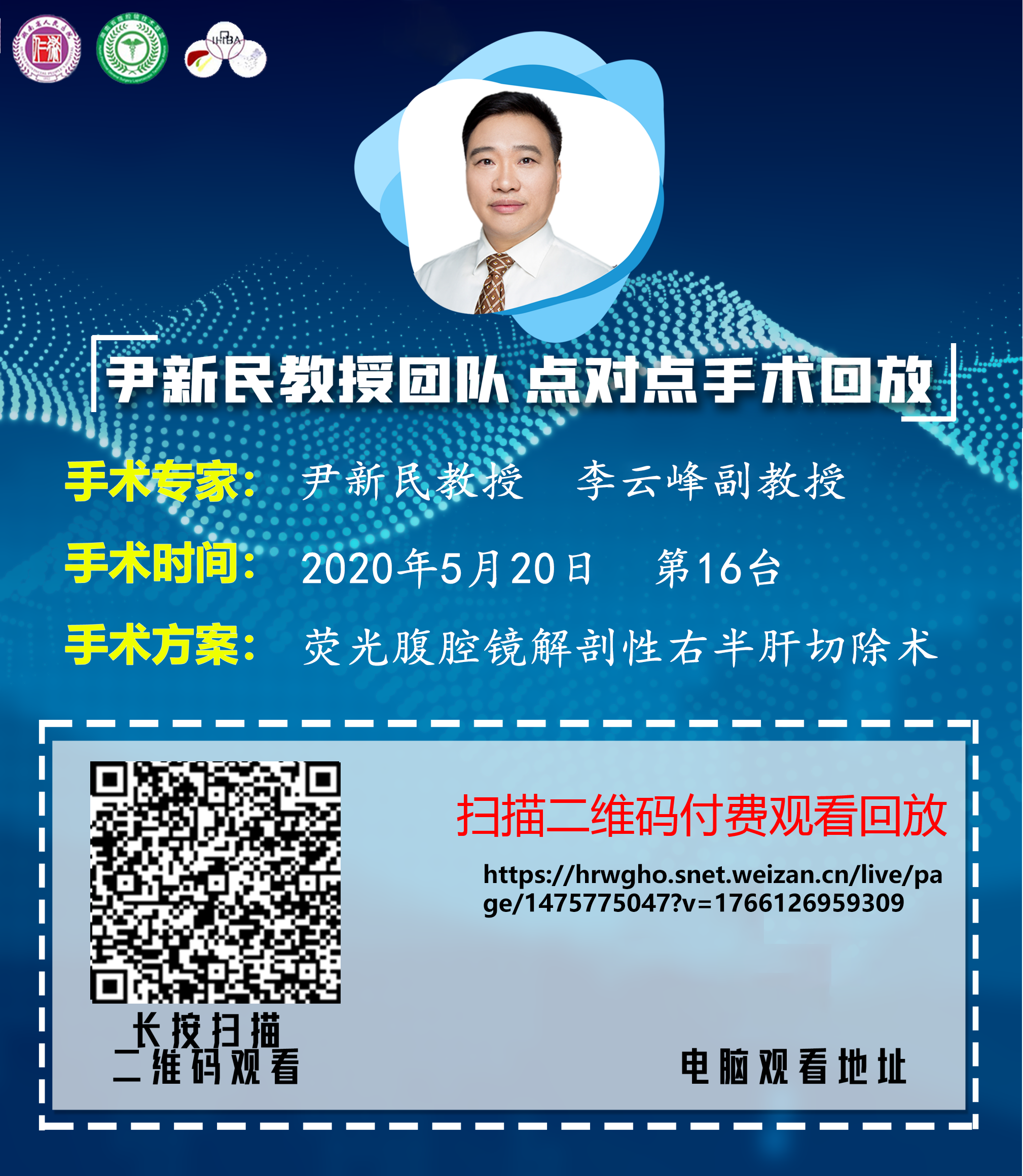 尹新民教授团队点对点第16台|荧光腹腔镜解剖性右半肝切除术|20200520