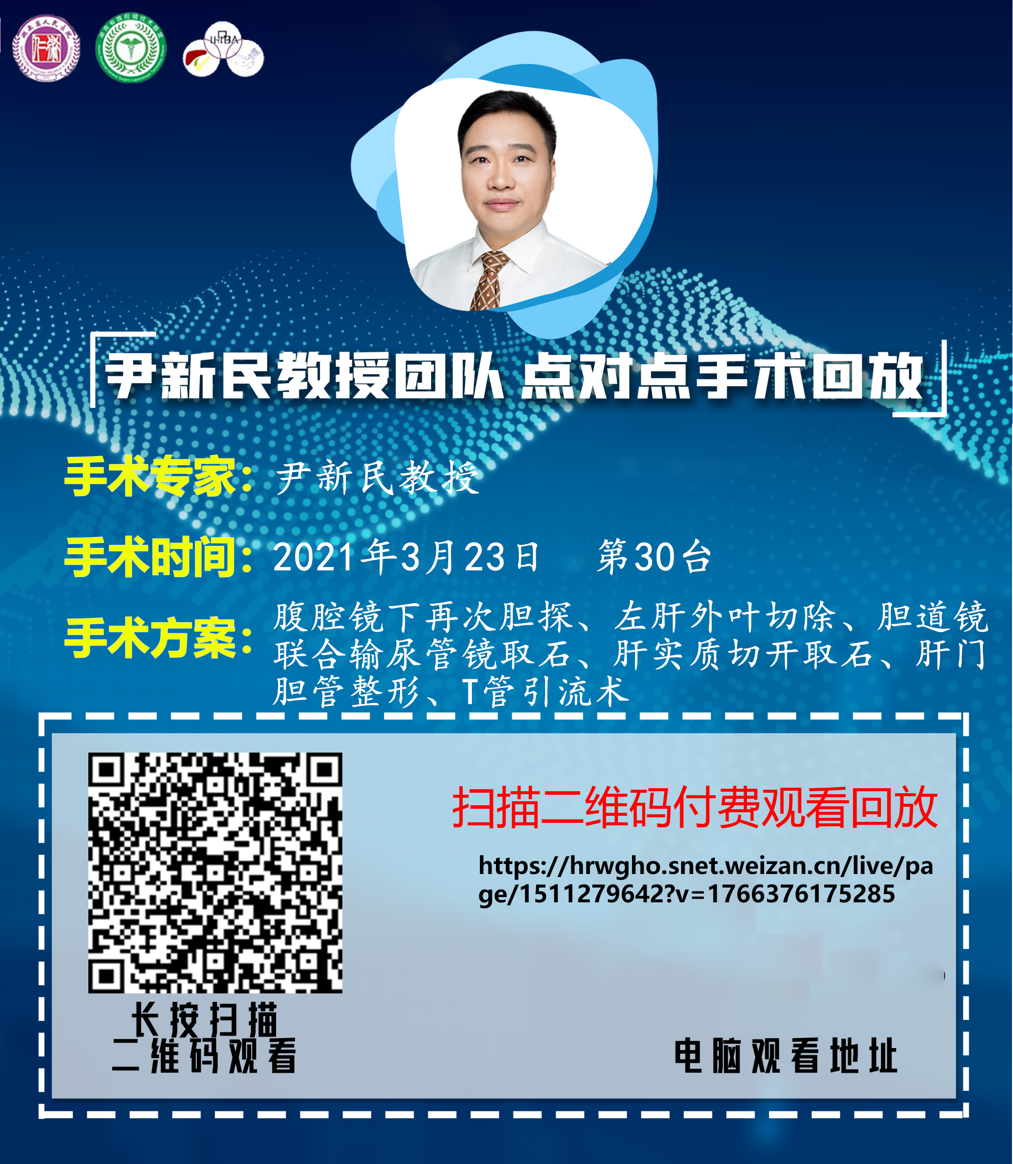 尹新民教授团队点对点第30台|腹腔镜下再次胆探、左肝外叶切除、胆道镜联合输尿管镜取石、肝实质切开取石、肝门胆管整形、T管引流术|20210323