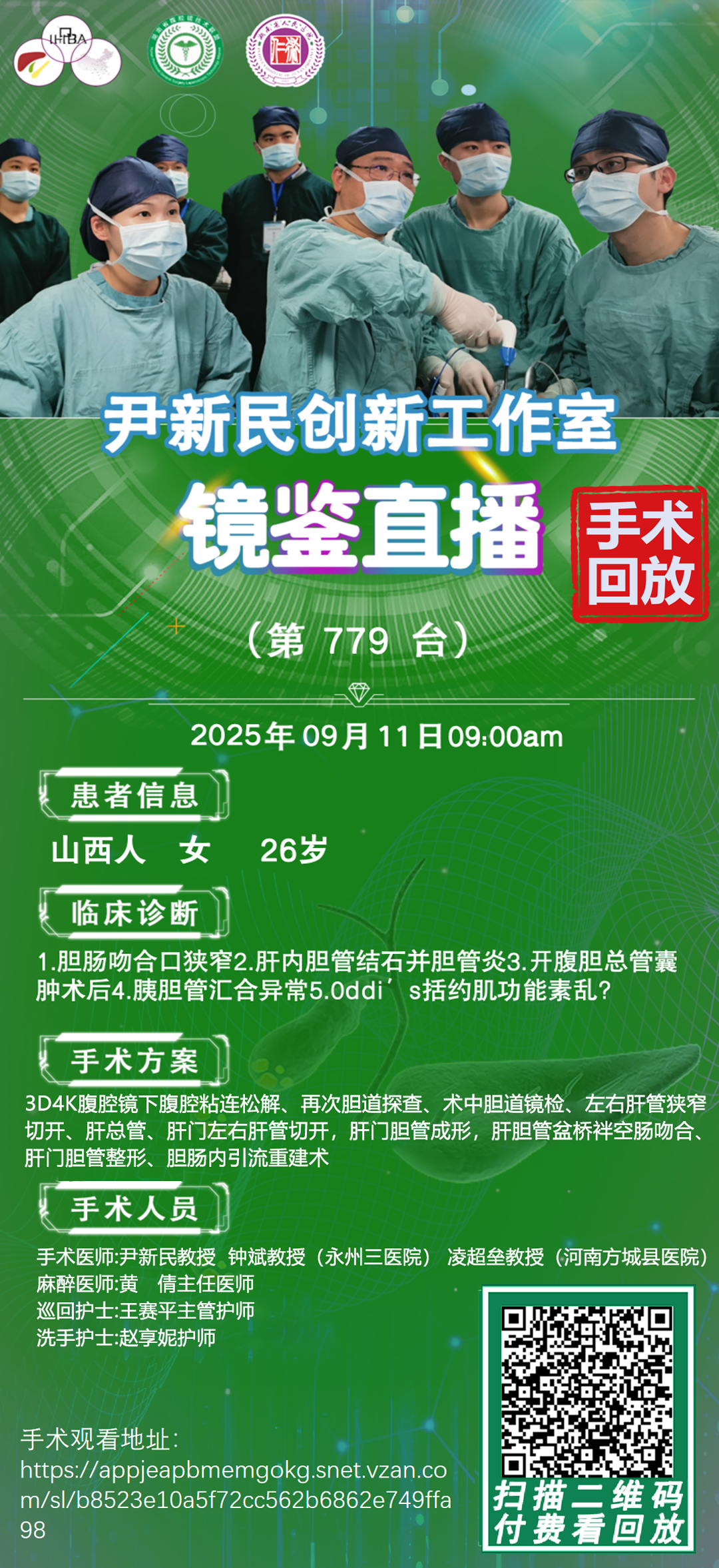 尹新民劳模创新团队镜鉴直播-第779台|3D4K腹腔镜下腹腔粘连松解、再次胆道探查、术中胆道镜检、左右肝管狭窄切开、肝总管、肝门左右肝管切开,肝门胆管成形|胆肠吻合口狭窄|20250911