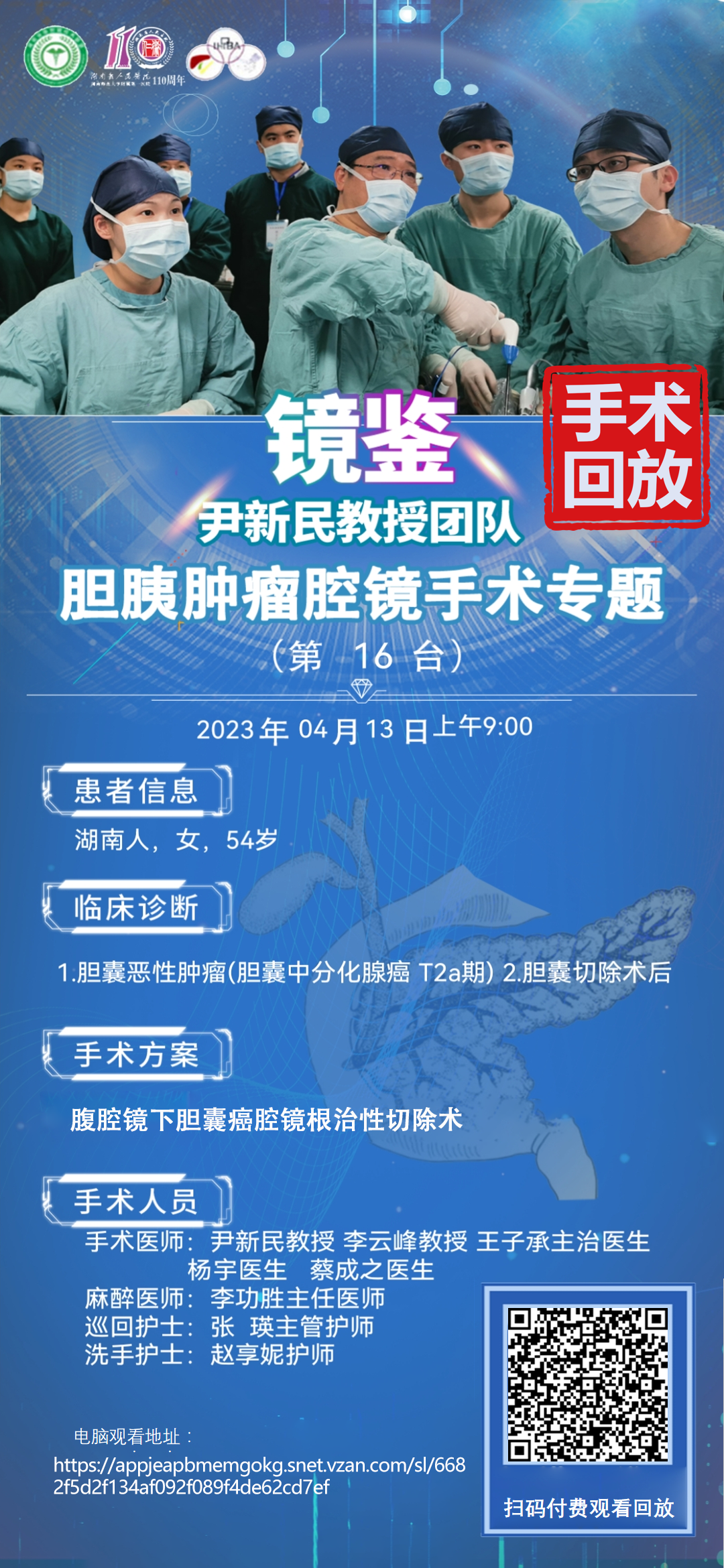 尹新民教授团队第16台|3D腹腔镜下胆囊癌根治术(肝S4b段+S5段切除、肝门区淋巴结清扫)|1.胆囊中分化腺癌 T2a期 2.胆囊切除术后|20230413