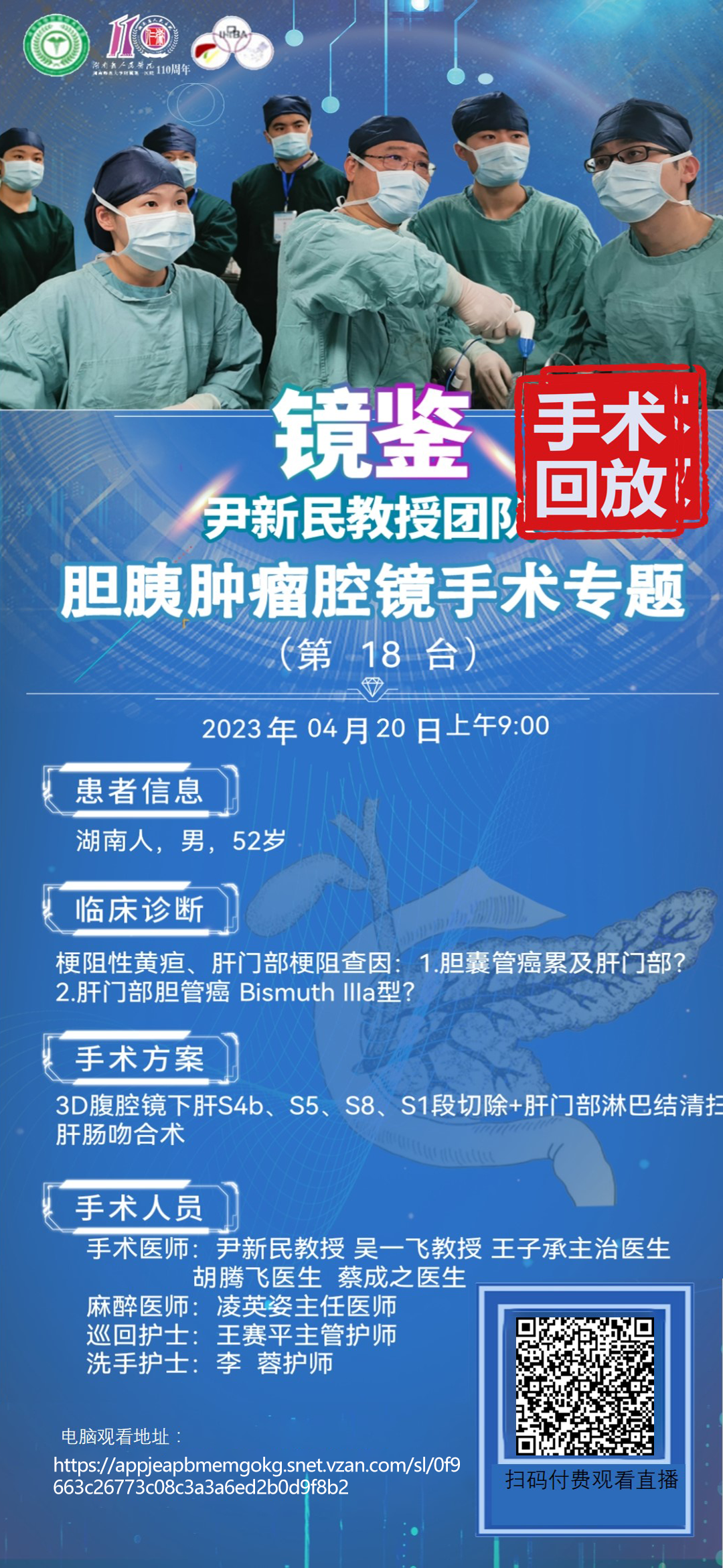 尹新民教授团队第18台|3D腹腔镜下肝S4b、S5、S8、S1段切除+肝门部淋巴结清扫+肝肠吻合术|梗阻性黄疸、肝门部梗阻查因:1.胆囊管癌累及肝门部?|20230420