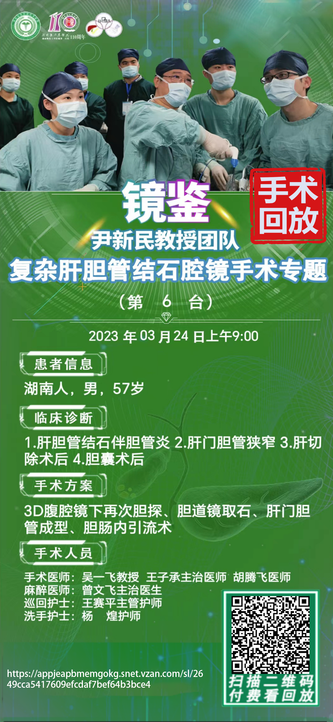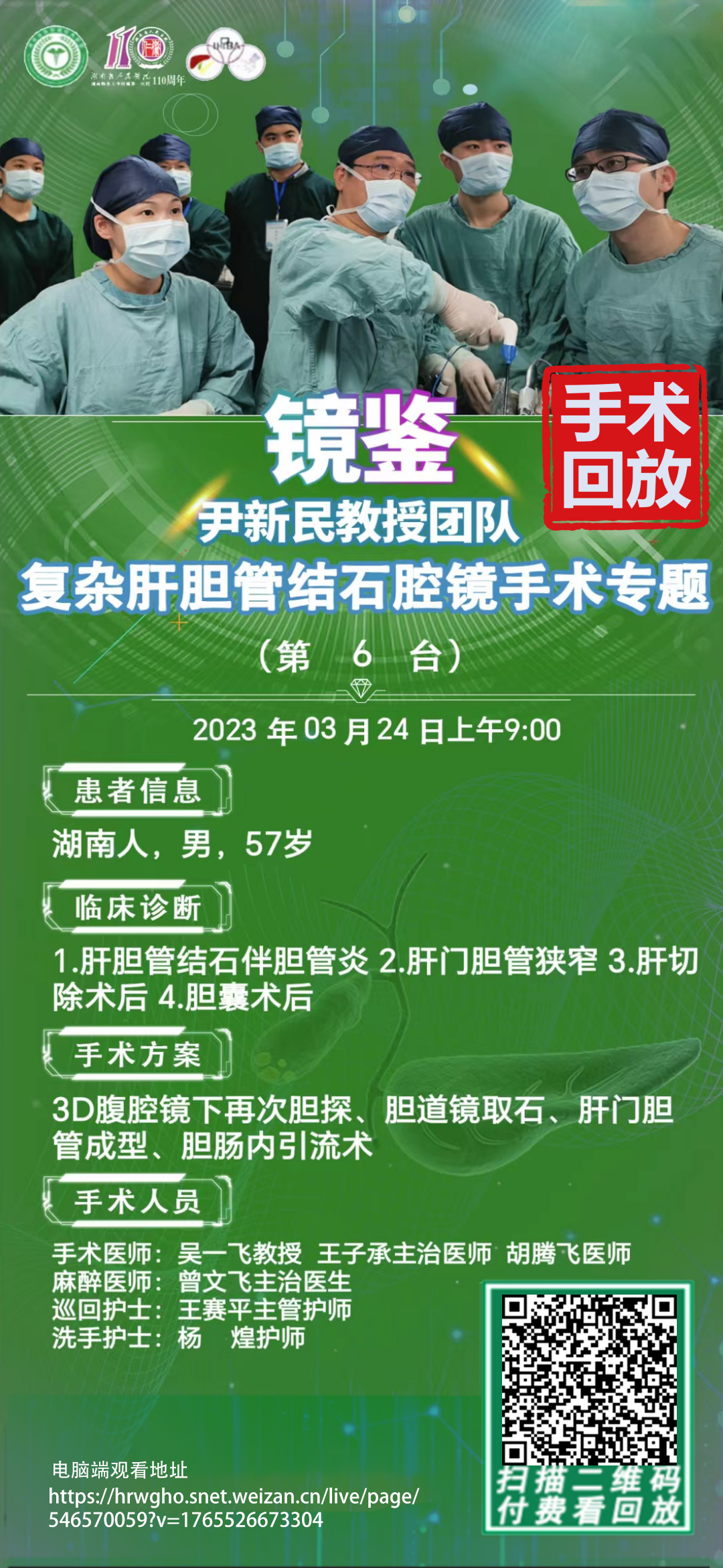 尹新民教授团队第6台|3D腹腔镜下再次胆探、胆管镜取石、肝门胆管成型、胆肠内引流术|1.肝胆管结石伴胆管炎 2.肝门胆管狭窄 3. 肝切除术后 4.胆囊术后|20230324