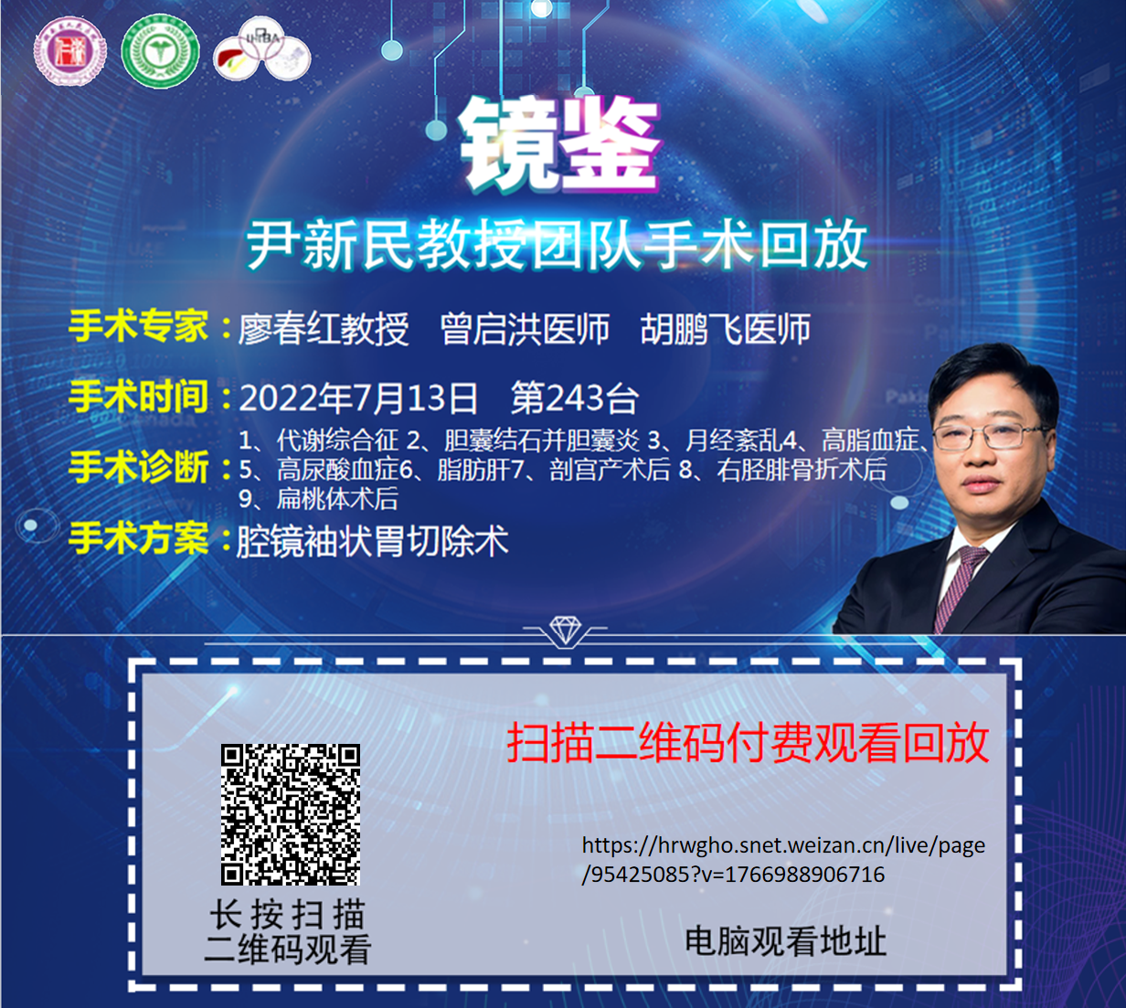尹新民教授团队第243台|腹腔镜袖状胃切除术 |1、代谢综合征 2、胆囊结石并胆囊炎 3、月经紊乱4、高脂血症、5高尿酸血症6、脂肪肝7、剖宫产术后 |20220713