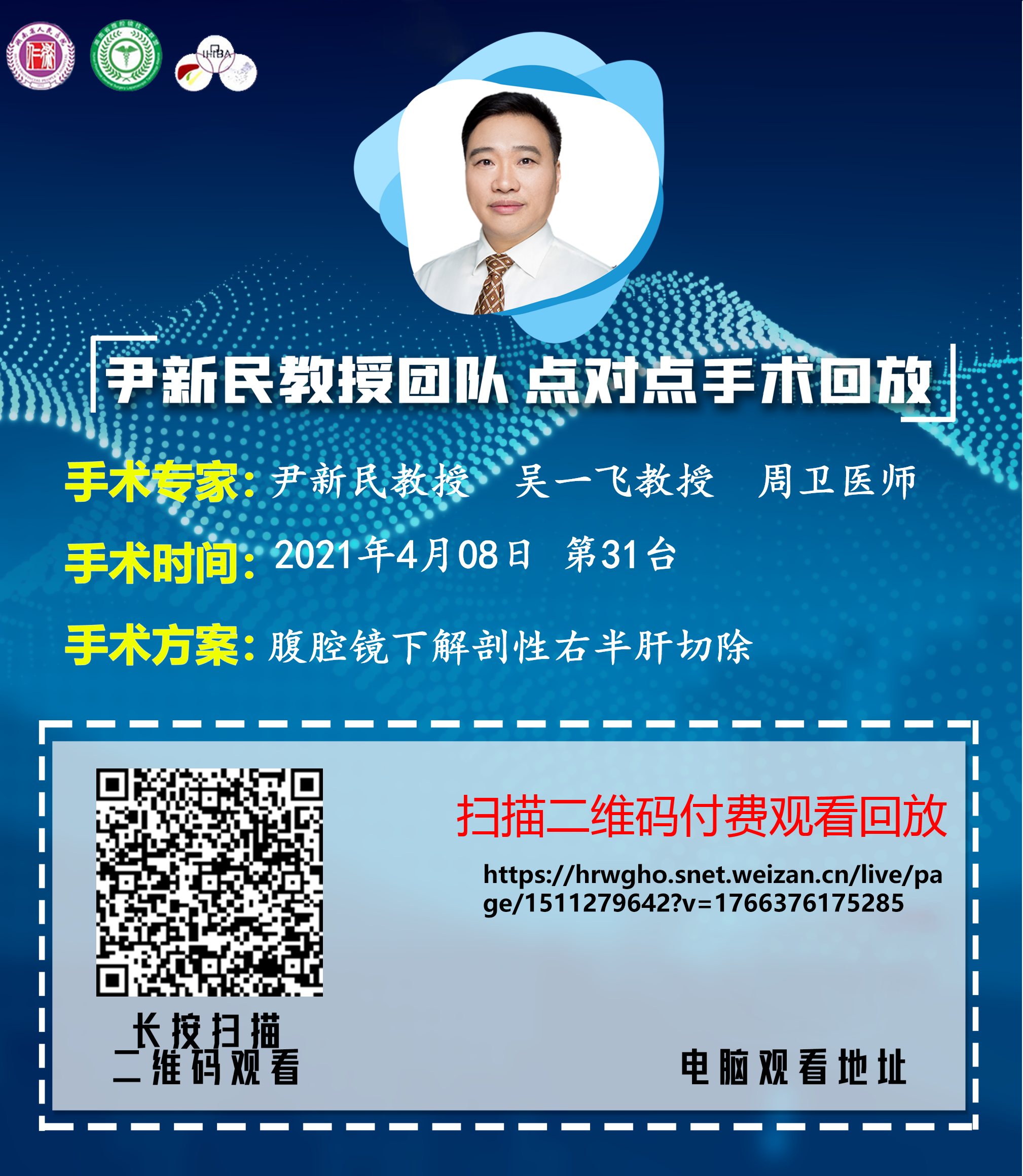 尹新民教授团队点对点第31台|腹腔镜下解剖性右半肝切除|1右肝巨型肝血管瘤(血管内皮瘤不排)2右肾囊肿|20210408