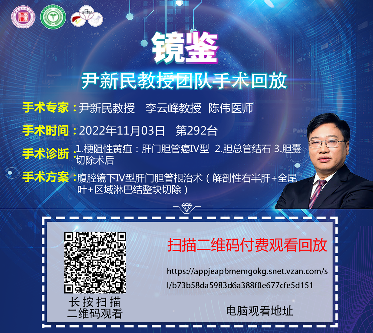 尹新民教授团队第292台 | 腹腔镜下肝门胆管癌根治术(肝中叶+尾叶/右半肝+尾叶、高位胆管空肠吻合) |1.梗阻性黄疸:肝门胆管癌IV型 2.胆总管结石 3.胆囊切除术后 |20221103