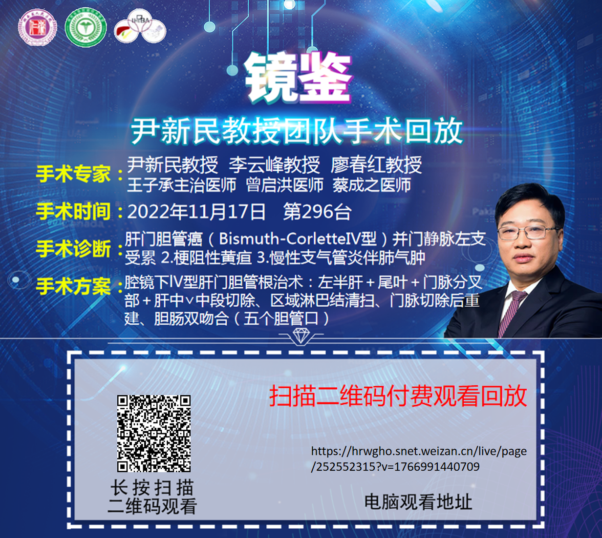 尹新民教授团队第296台 | 腔镜下lV型肝门胆管根治术:左半肝+尾叶+门脉分叉部+肝中∨中段切除、区域淋巴结清扫、门脉切除后重建、胆肠双吻合(五个胆管口) |20221117