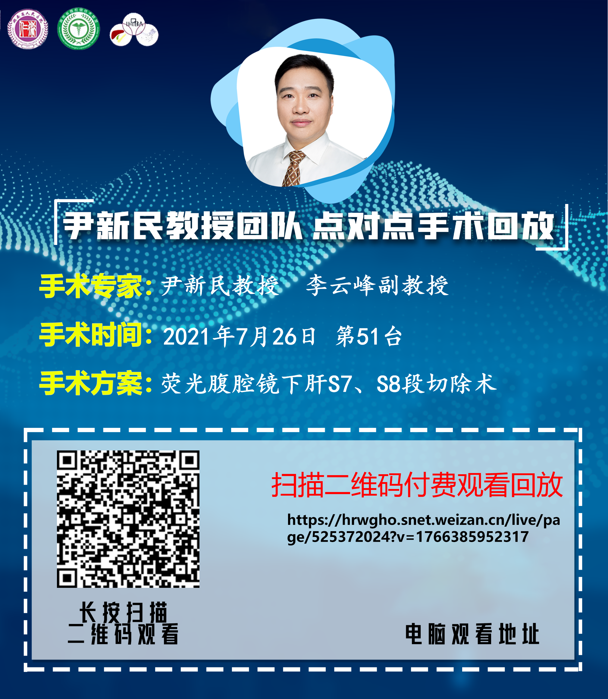 尹新民教授团队点对点第51台|荧光腹腔镜下肝S7、S8段切除术|1.右肝占位性病变:肝囊肿?肝囊腺瘤?其他? 2.慢性乙型病毒性肝炎 3.右中肺小结节|20210726