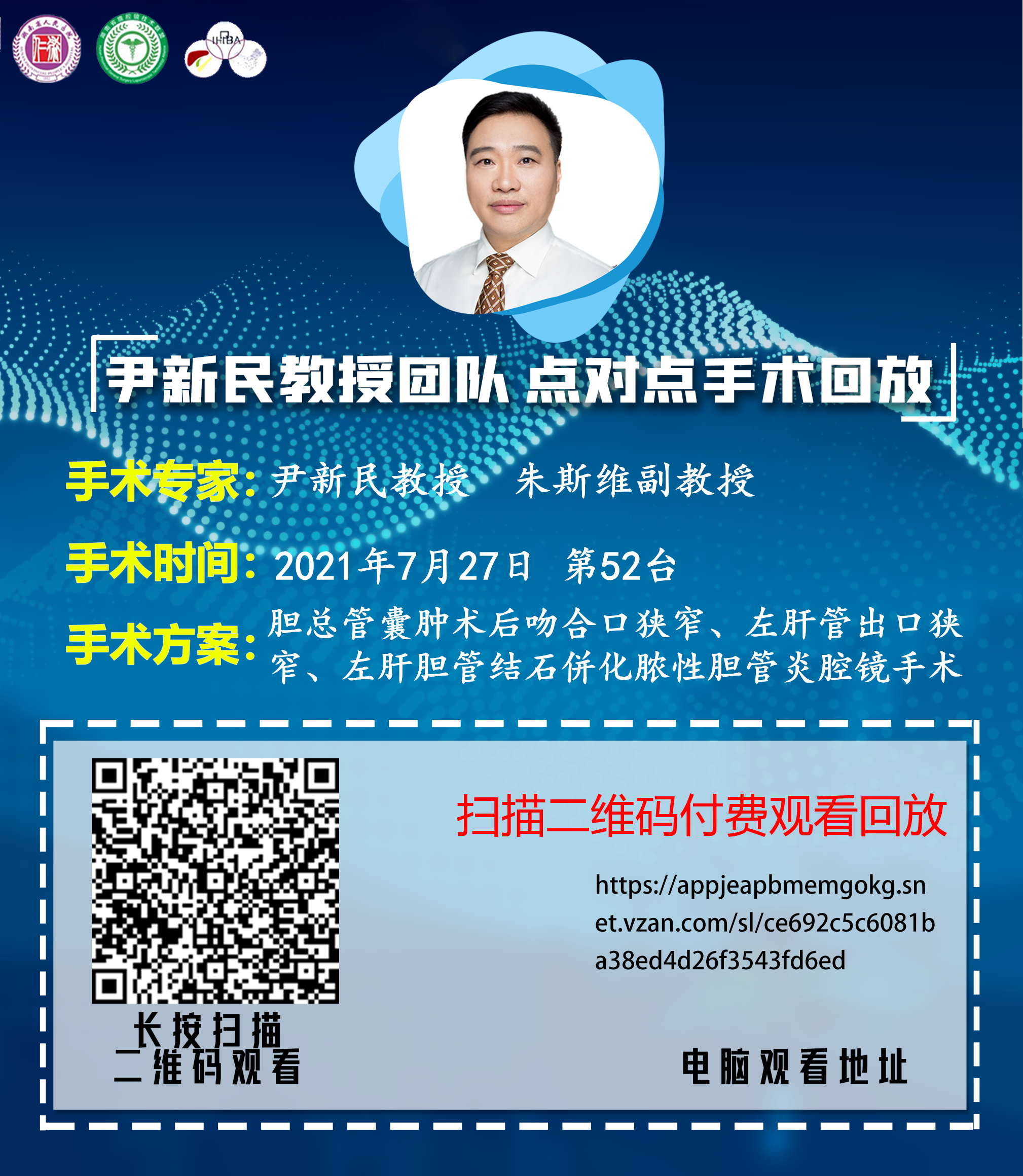 尹新民教授团队点对点第52台|胆总管囊肿术后吻合口狭窄左肝管出口狭窄左肝胆管结石併化脓性胆管炎腔镜手术|肝胆管结石伴胆管炎胆肠吻合口狭窄胆源性肝硬化胆总管囊肿术后|20210727