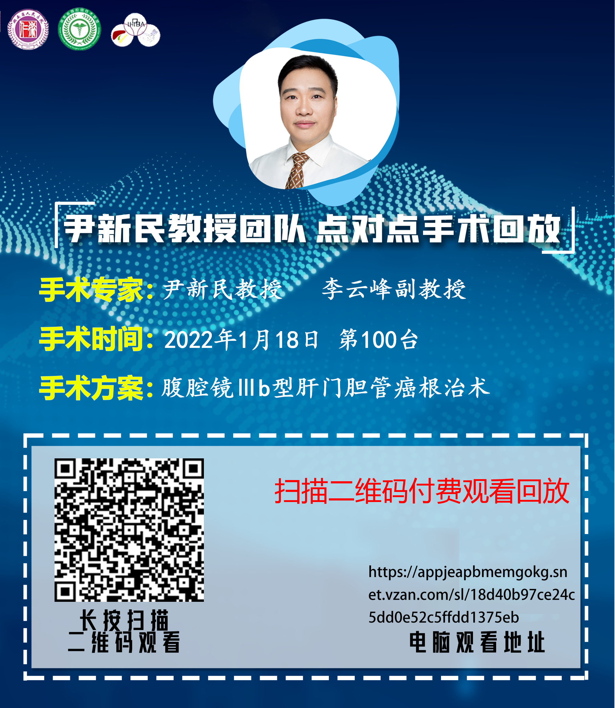 尹新民教授团队第100台|腹腔镜Ⅲb型肝门胆管癌根治术|1.Ⅲb型肝门胆管癌 2.梗阻性黄疸|20220118
