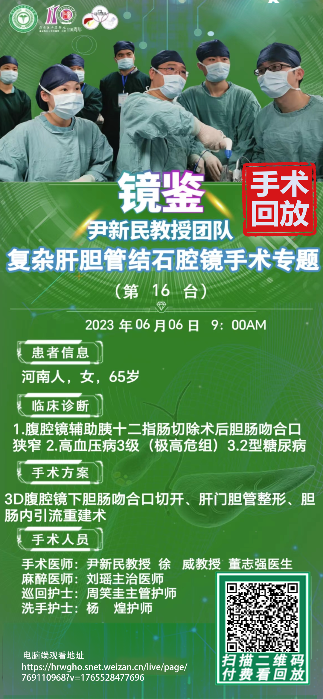 尹新民教授团队复杂肝胆管结石第16台|3D腹腔镜下再次胆道探查、肝S4b及肝门疤痕组织切除、胆道镜取石、尹氏肝门胆管成型、胆肠内引流术|20230606