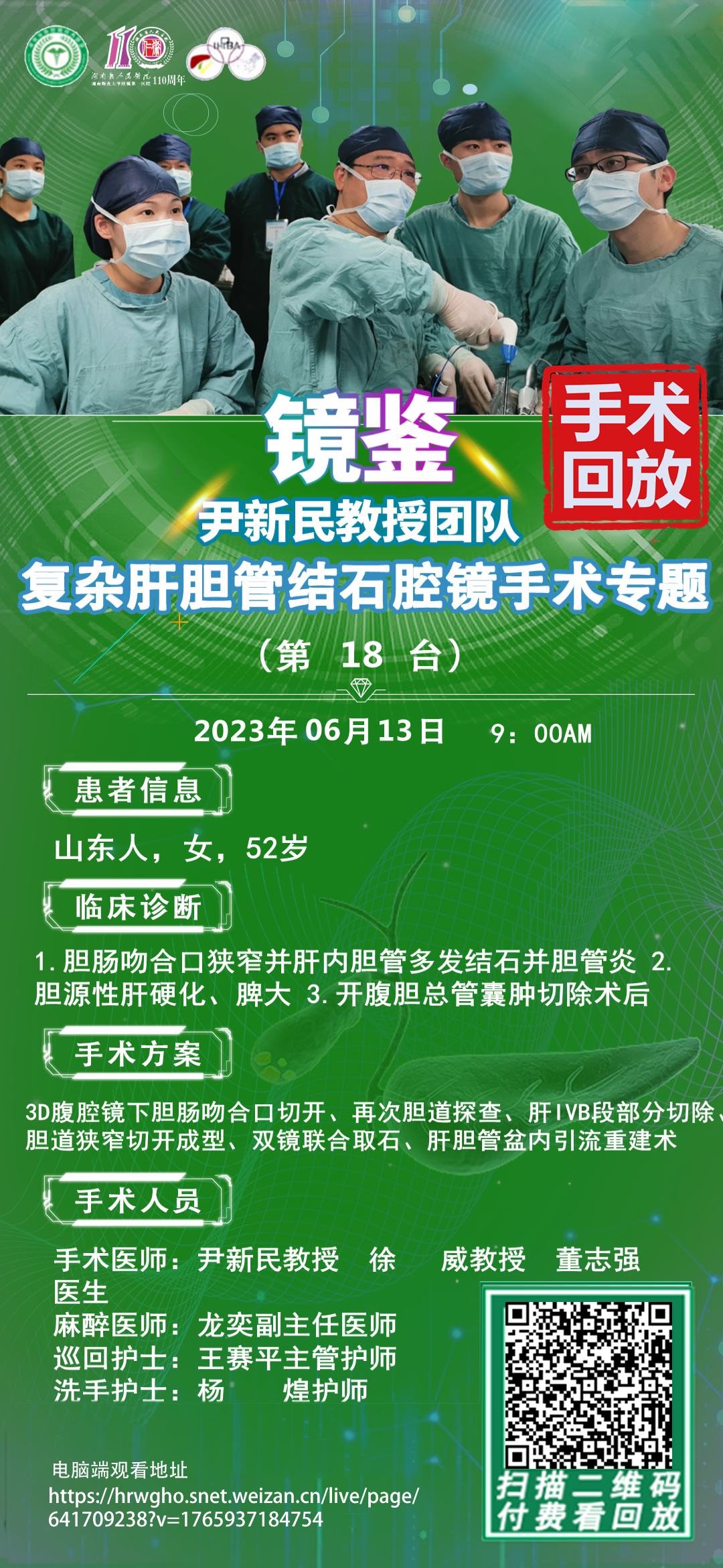 尹新民教授团队复杂肝胆管结石第18台 | 4K荧光腔镜肝中叶切除术|1.胆肠吻合口狭窄并肝内胆管多发结石并胆管炎 2..胆源性肝硬化、脾大 3.开腹胆总管囊肿切除术后 |20230613
