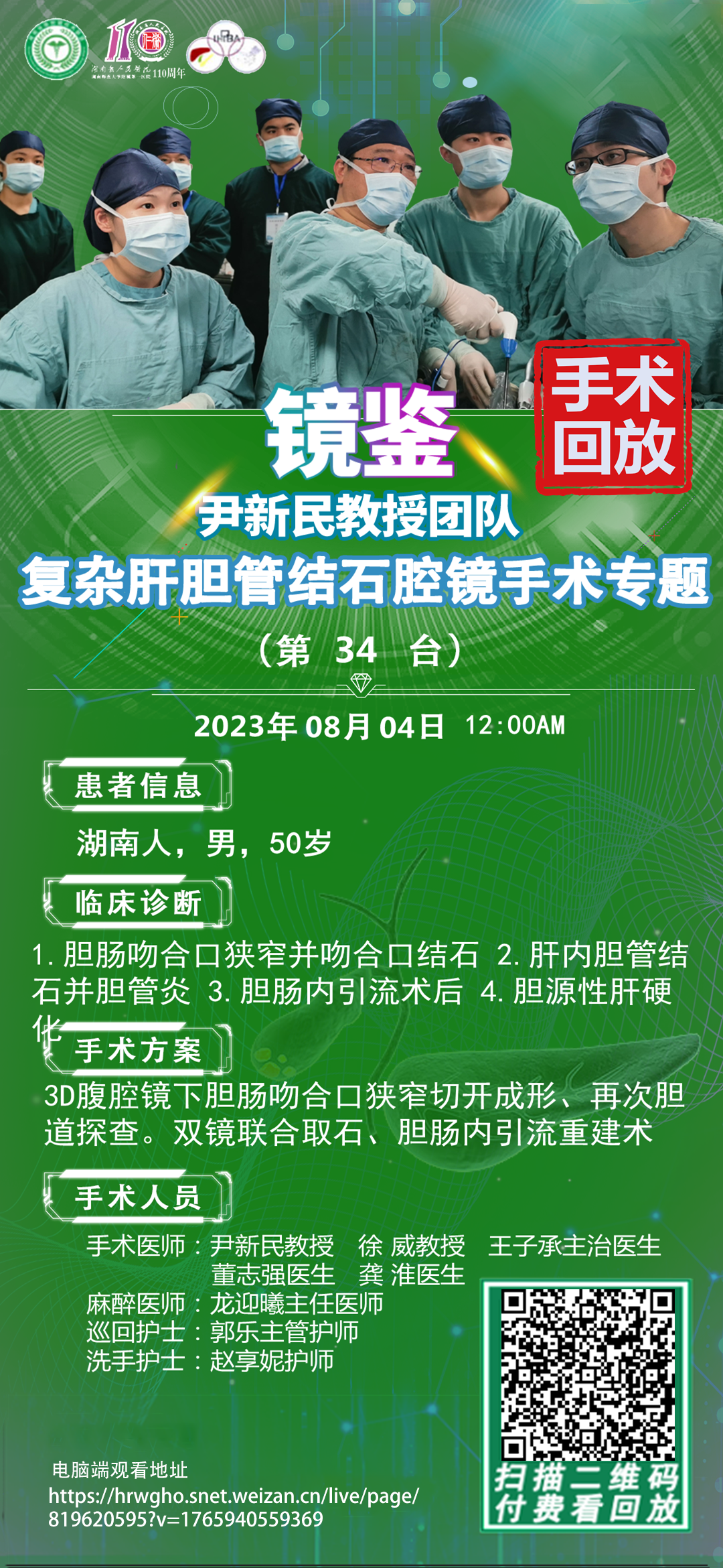 尹新民教授团队复杂肝胆管结石腔镜手术第33台|3D腹腔镜下胆道探查、胆管囊肿切除、胆肠内引流术(备保留十二指肠胰头切除、胰十二指肠切除术)|20230803