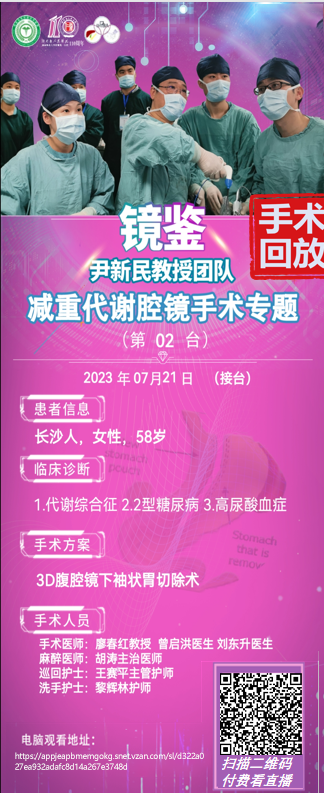尹新民教授团队-减重代谢腔镜手术-第2台|3D腹腔镜下袖状胃切除术|1.代谢综合征 2.2型糖尿病 3.高尿酸血症|20230721